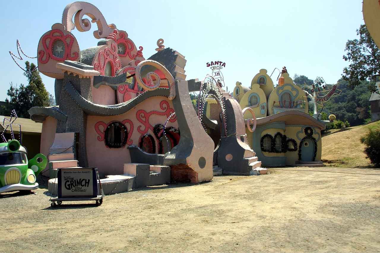 さすがは本場のユニバーサル・スタジオとあって、このフーヴィル(Whoville)を再現した超大型セットは『グリンチ』の撮影で実際に使われたもの。2000年に『グリンチ』が公開されて以降、約20年にわたってスタジオツアーの目玉としてツアー参加者たちを喜ばせてきた。また、ユニバーサル・スタジオ・ハリウッドが毎年クリスマスシーズンに開催しているイベント、グリンチマス(Grinchmas)が開催されている場所でもある。