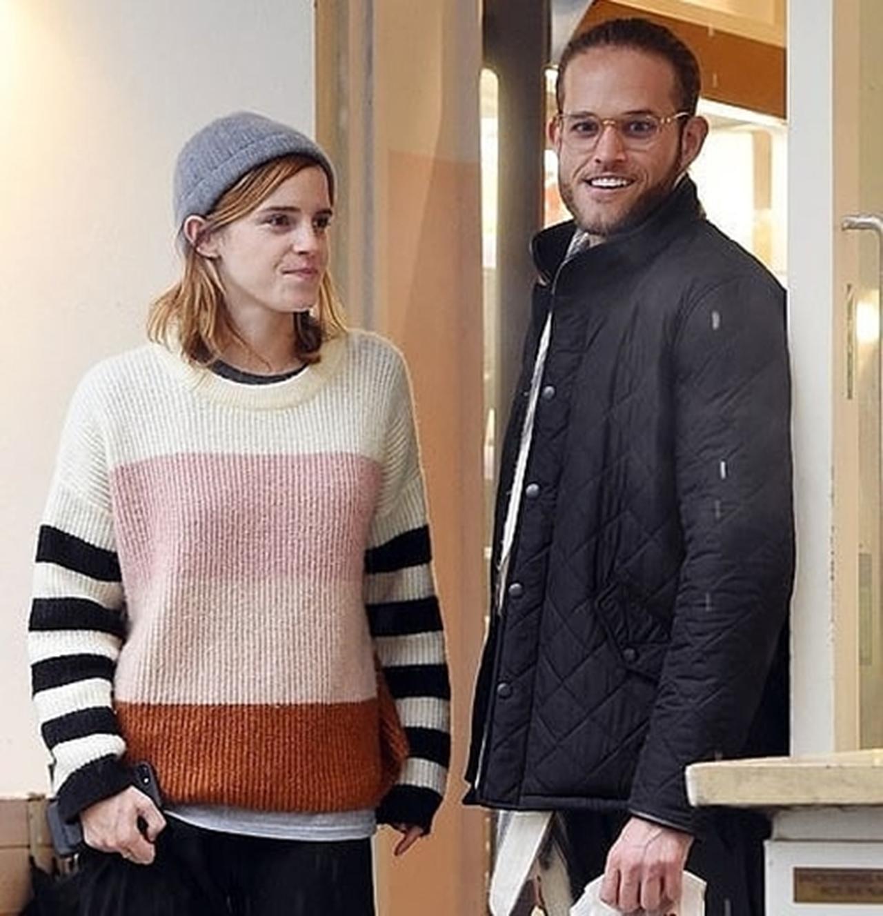 マルチカラーのボーダーのニットに、グレーのニット帽、すっぴんというラフな出で立ちで母国であり現在も1年の半分ほどを過ごしているイギリス・ロンドンのカフェに姿を現したエマの傍らには、長いロングヘアを海外では“マン・バン(Man Bun)”と呼ばれるお団子へアにまとめ、眼鏡をかけた見慣れない男性の姿があった。