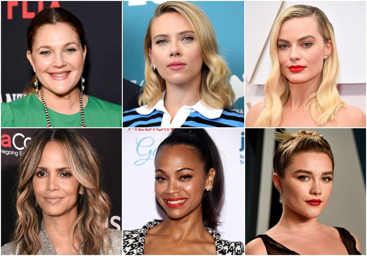 上段左から:ドリュー・バリモア、スカーレット・ヨハンソン、マーゴット・ロビー、下段左から:ハル・ベリー、ゾーイ・サルダナ、フローレンス・ピュー