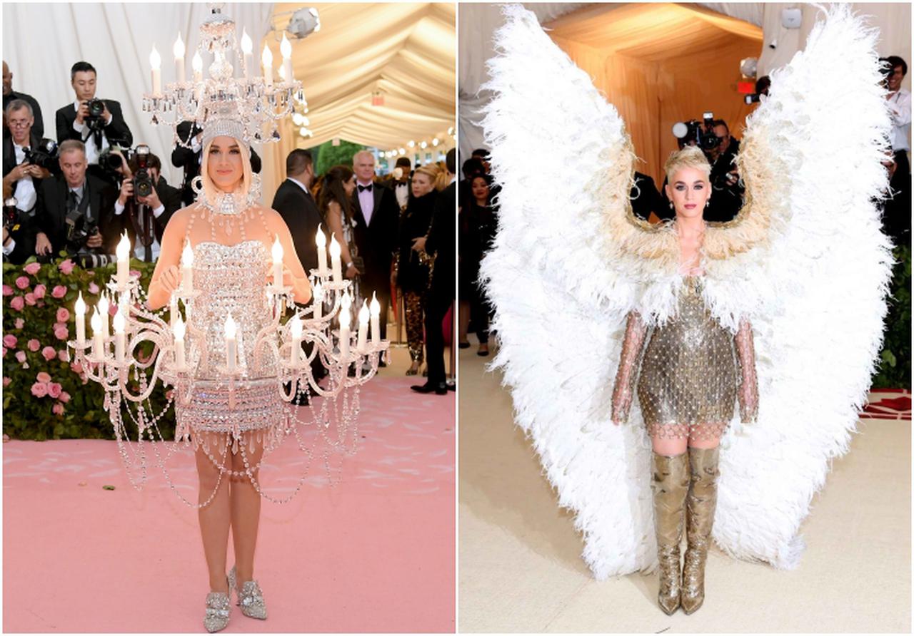 そんななか、「宗教」がテーマだった2018年には巨大な羽を背負った天使、「キャンプ様式」がテーマだった2019年にはシャンデリアを模したドレスと、毎年、メットガラで圧巻の着こなしを披露してきたシンガーのケイティ・ペリーは、もしも予定通り開催されていたとしたら、2020年のメットガラで着る予定だった衣装の一部をインスタグラムでお披露目した。