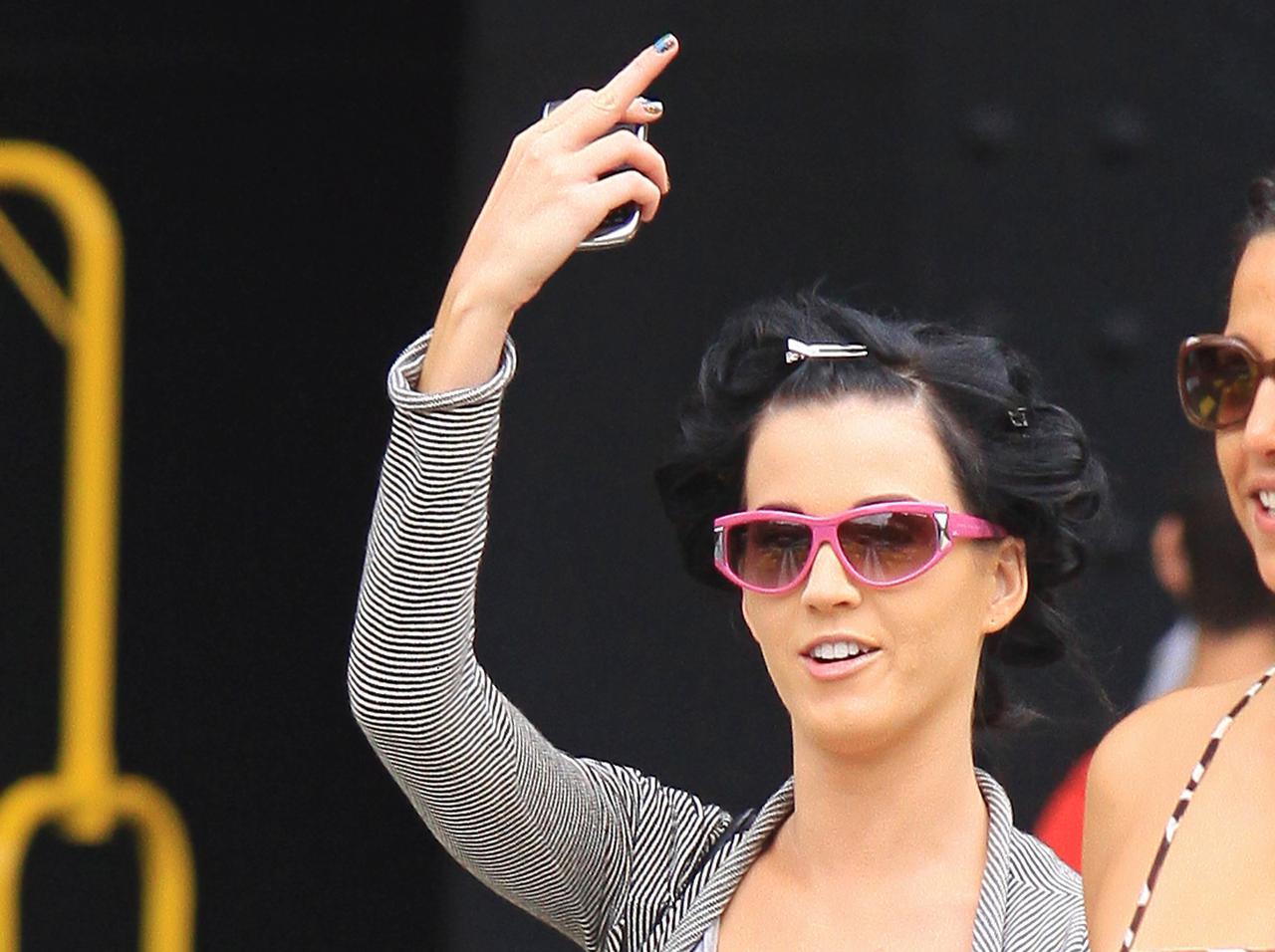 2009年に撮影されたパパラッチに中指を立てるケイティ。