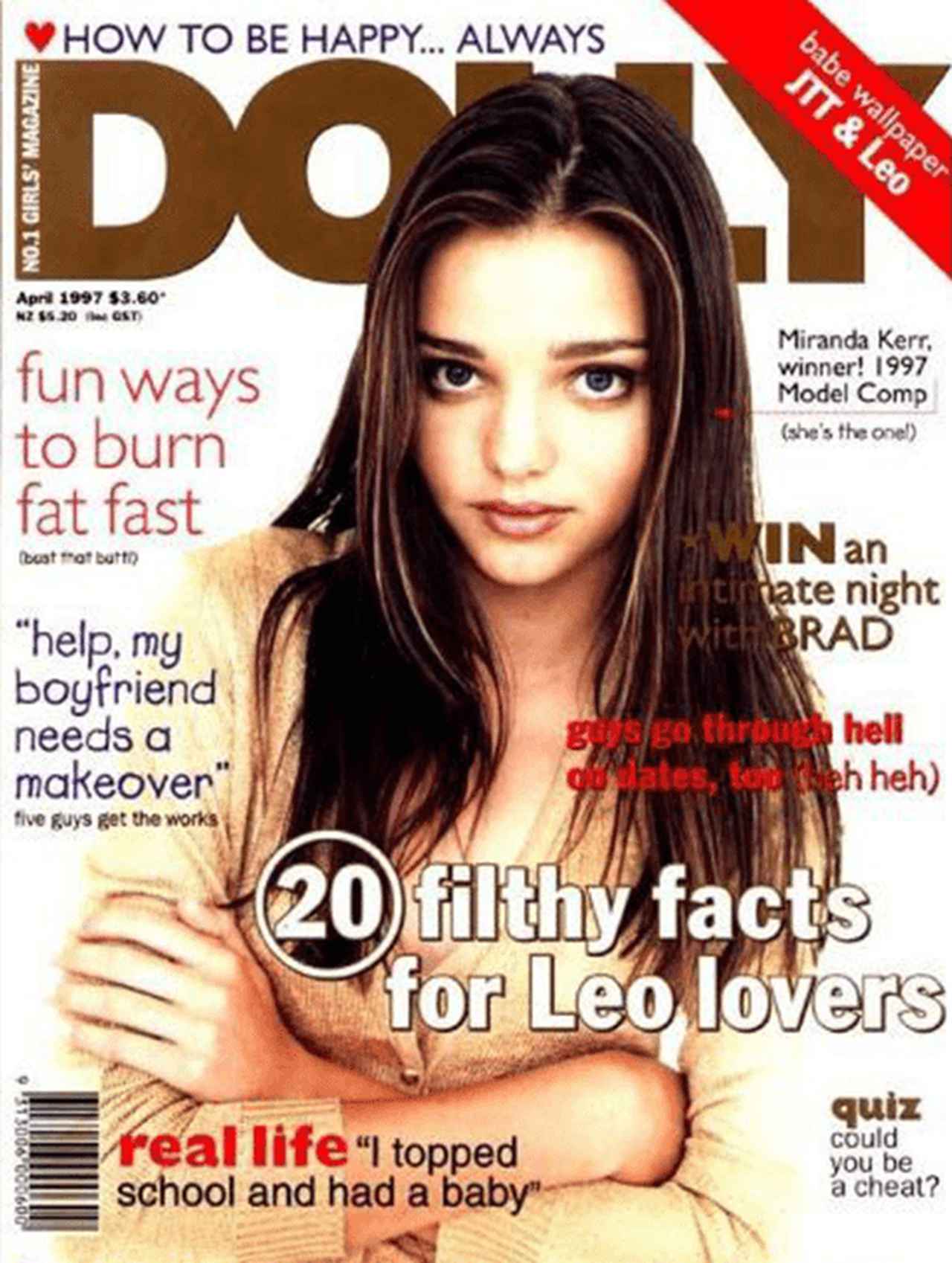 ミランダ・カーがモデルデビューを飾ったDolly誌の表紙。14歳になる誕生日の直前に撮影された。