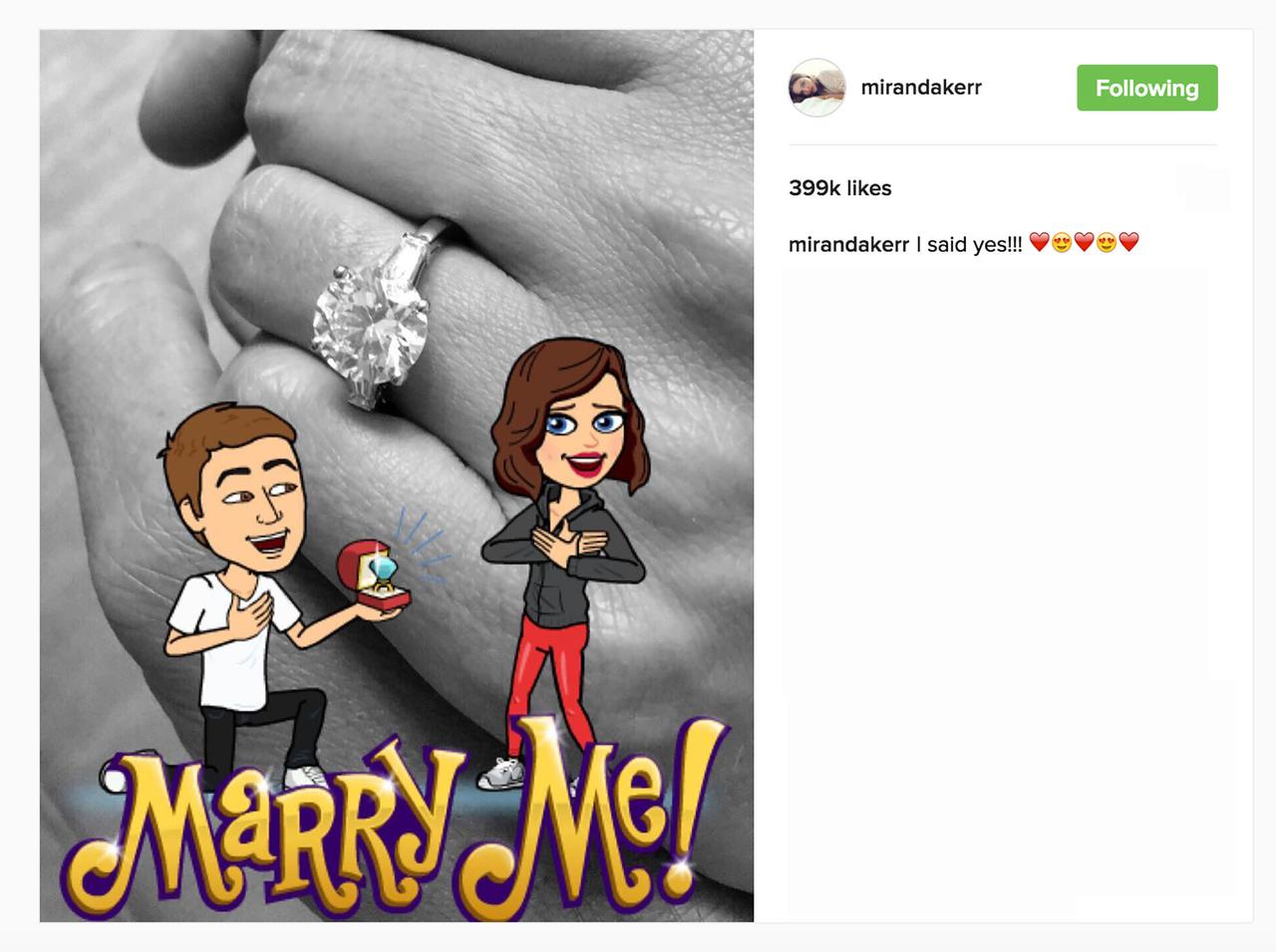 「YESと言いました!」というコメントと共にインスタグラムに左手薬指に輝く指輪の写真をアップして婚約を発表。