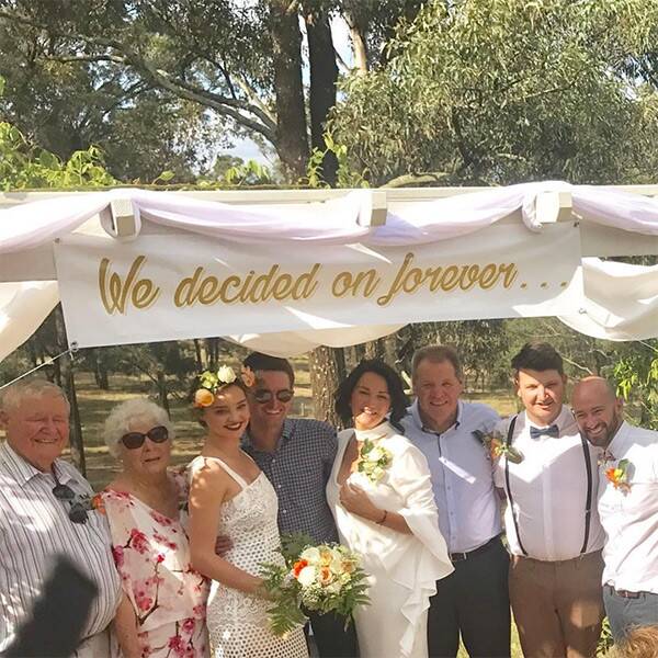 29、結婚式は2017年に自宅で行なわれ、ミランダ・カーはグレース・ケリーのウェディングドレスにインスパイアされた、ディオール(Dior)のオートクチュールのロングスリーブドレスを着用。