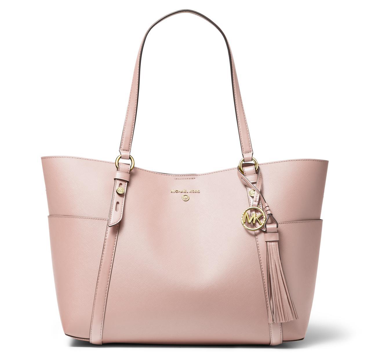 華やかでフェミニン、かつ機能性も両立したデザインの「CARMEN」は、MKサークルロゴをあしらった”MK ロック”クロージャーがアクセントに。傷がつきにくくお手入れも簡単なサフィアーノレザーで上品に仕上げられており、チェーンストラップとロングショルダーストラップが付属されているので、シーンに合わせて幅広く活用できる。