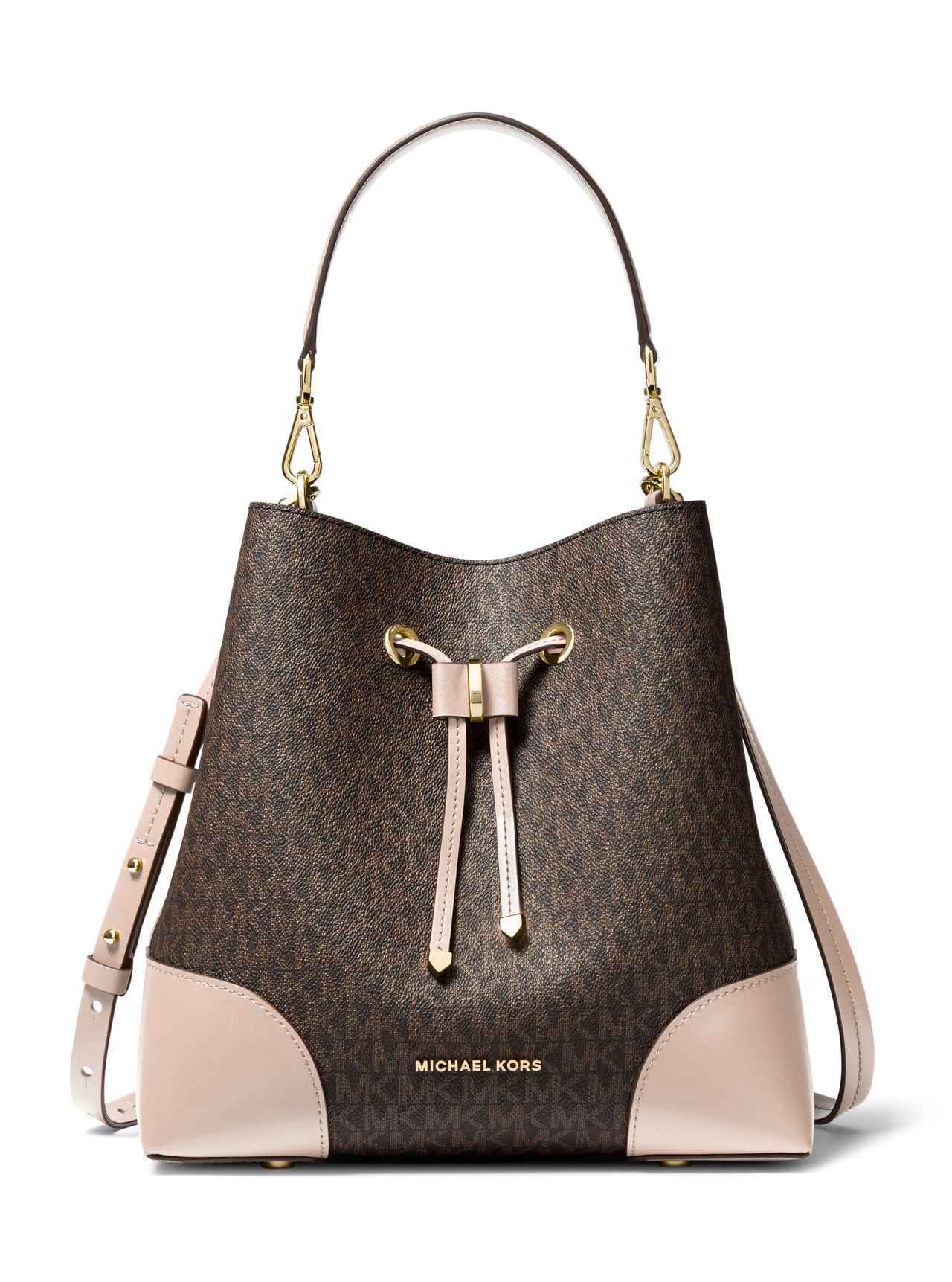 マイケル・コースのアイコニックなシグネチャーロゴをキャンバスにプリントしたライン。 モダンなシルエットで人気の「MERCER GALLERY」は、全体にMKロゴプリントをあしらい、バッグの底部分やハンドルには優しい印象のピンクのレザーを合わせ、柔らかな雰囲気を与えている。