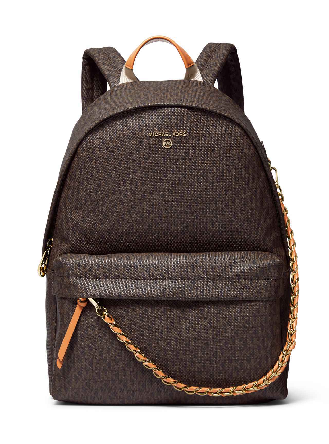 そして新作として登場した、スポーティーとシックを兼ね備えたアイテム「SLATER」は、バッグ部分はもちろんのこと、ショルダーストラップにまでMKロゴプリントを配したバックパック。レザーと金具を組み合わせたストラップが、バックパックにリュクスな雰囲気も添えるアクセントに。