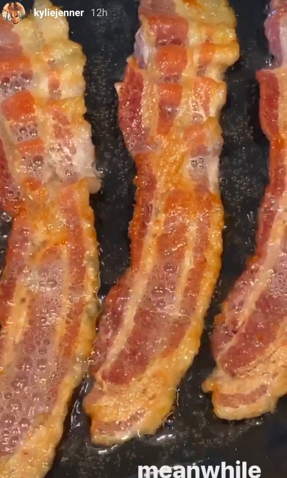 カイリーはこのフレンチトーストに、カリカリに焼いたベーコンをつけ合わせに。甘いのとしょっぱいのを一緒に楽しみたいという発想はセレブも同じのよう。