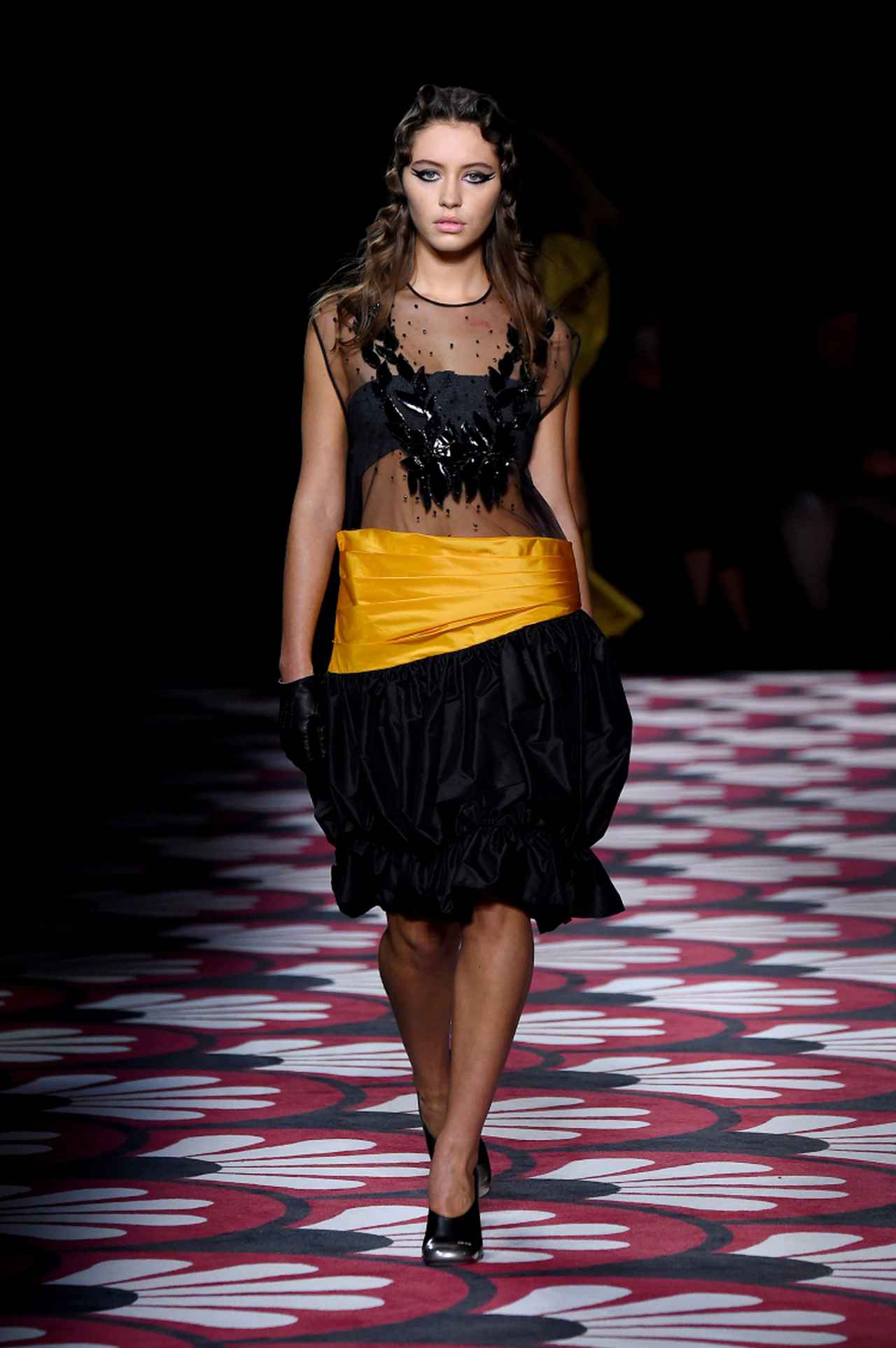 ミュウミュウ(Miu Miu)の2020年秋冬コレクションのランウェイを歩くジュードの娘アイリス。
