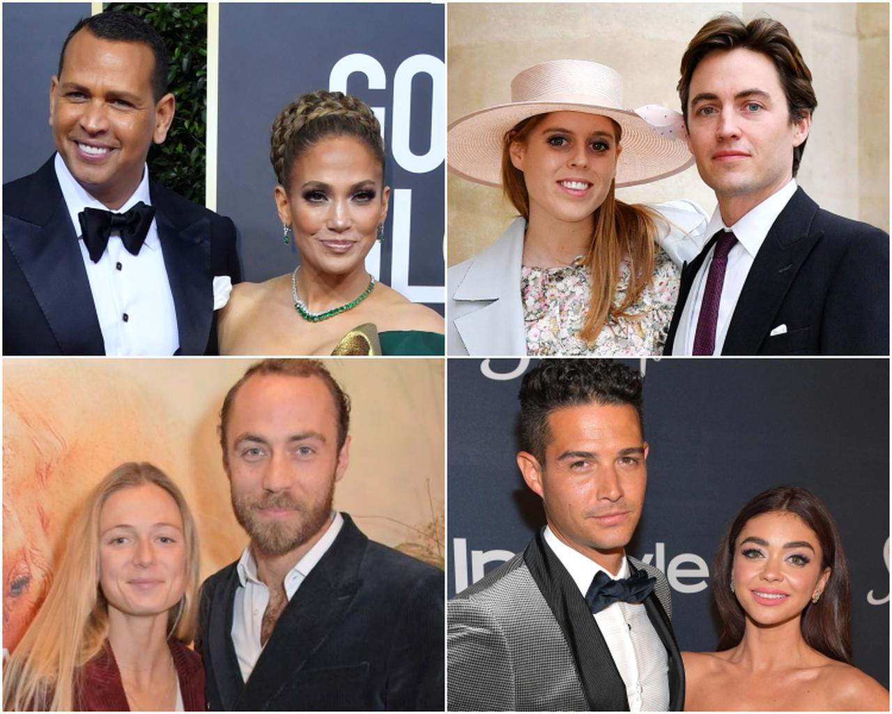 左上から時計回りに:アレックス・ロドリゲス&ジェニファー・ロペス、ベアトリス王女&エドアルド・マペッリ・モッツィ、ジェ―ムズ・ミドルトン&アリジ―・テヴェネット、サラ・ハイランド&ウェルズ・アダムス。