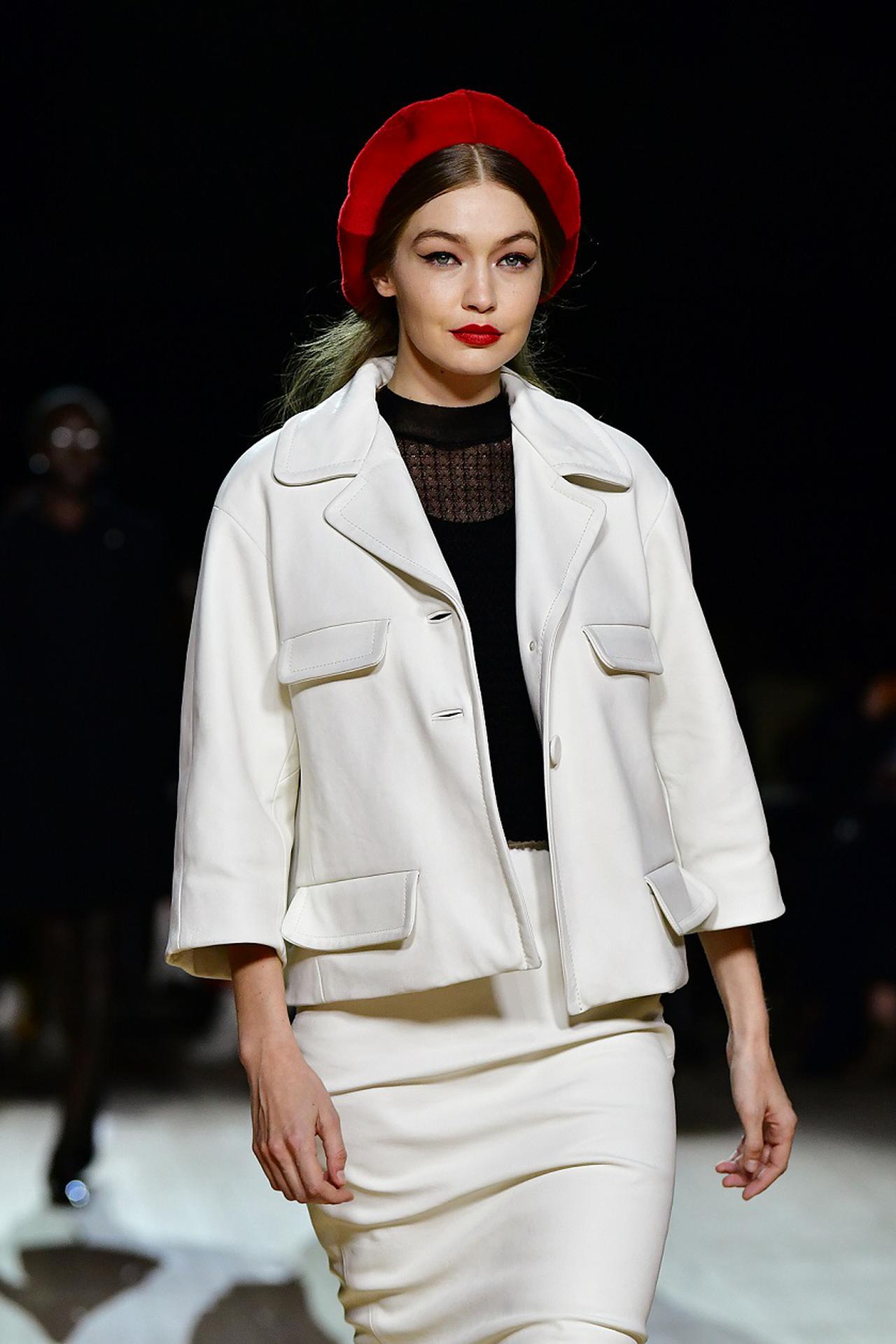 2月のファッションウィークでマーク・ジェイコブスのランウェイを歩くジジ。
