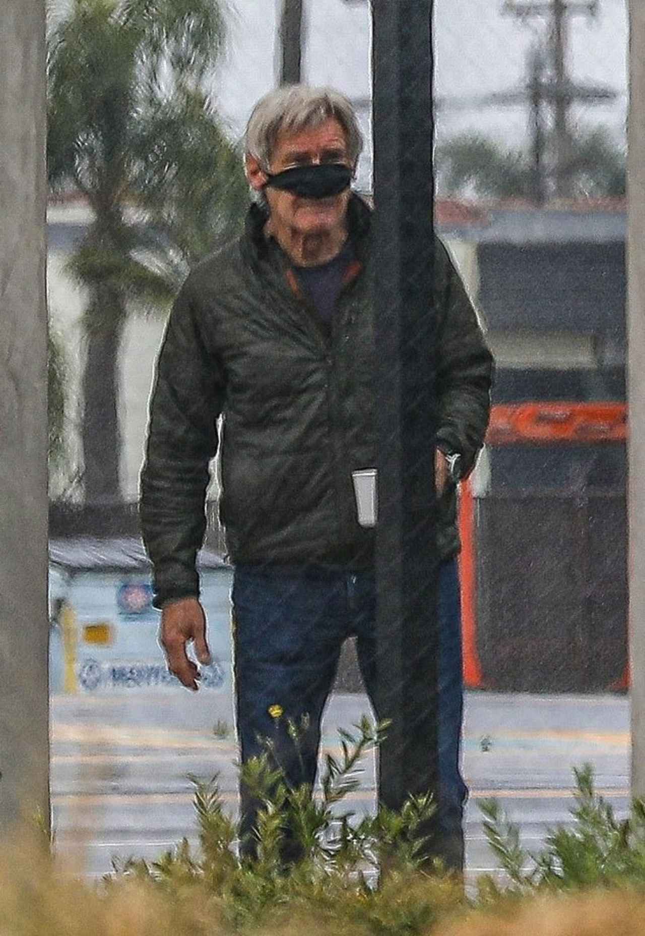 ただし、普通の生活に戻りつつあるとはいえ、ハリソンが暮らすロサンゼルスでは外出時のマスク着用が必須。ハリソンもちゃんとこのルールに従ってマスクをつけていたのだが、さすがにマスクをしたままの状態で飲み物は飲めないので、そのあいだだけマスクをずらしていた。でも、その“ずらし方”がちょっと変…。