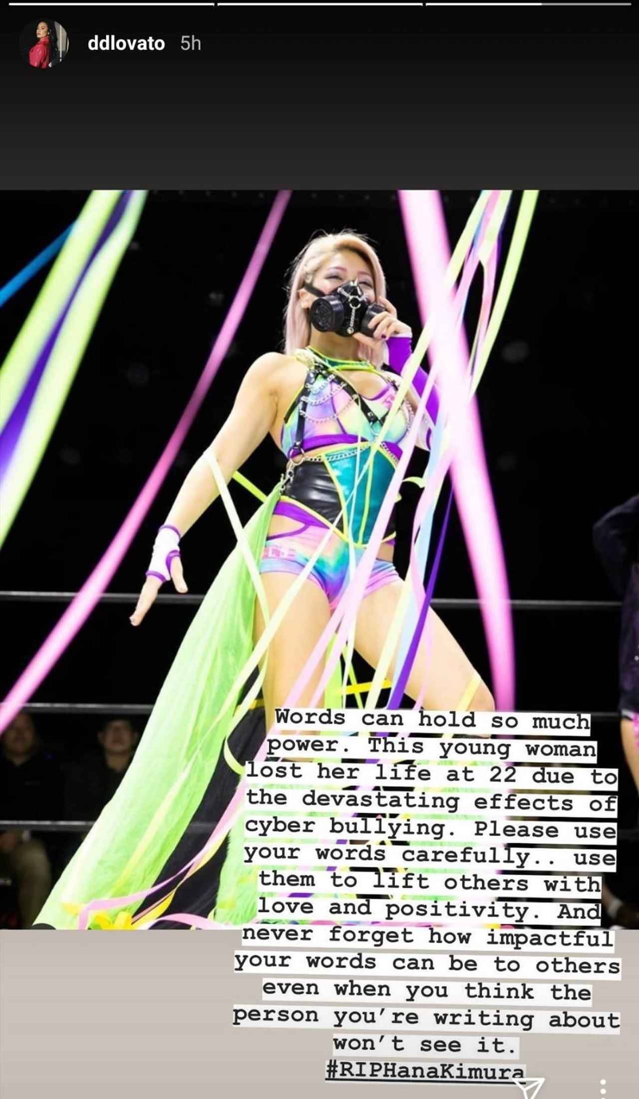 それはセレブ界にも広がり、今回はシンガー兼俳優のデミ・ロヴァートがネットいじめにより22歳という若さで命を落としてしまった木村選手のことを知り、自身のインスタグラムで木村選手を追悼すると共に、こんなメッセージを残した。