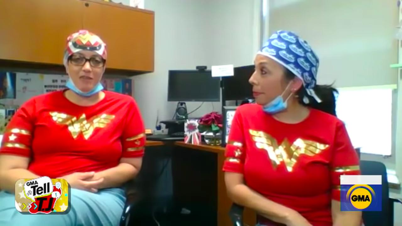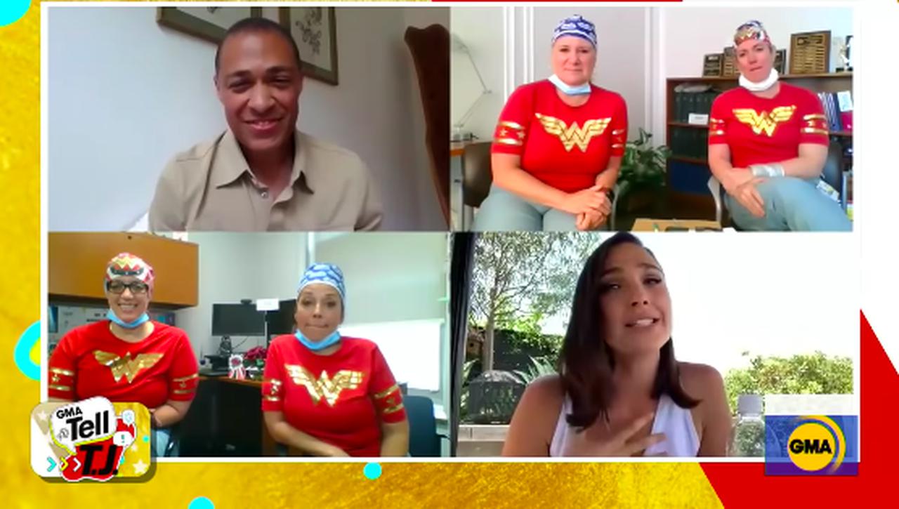 その後、番組のコーナーを担当しているジャーナリストのT・J・ホルムズが、ワンダーウーマンの格好をして働いている4人の病院スタッフたちとビデオ通話で話していると、「5人目のワンダーウーマン」としてガルがサプライズで登場!