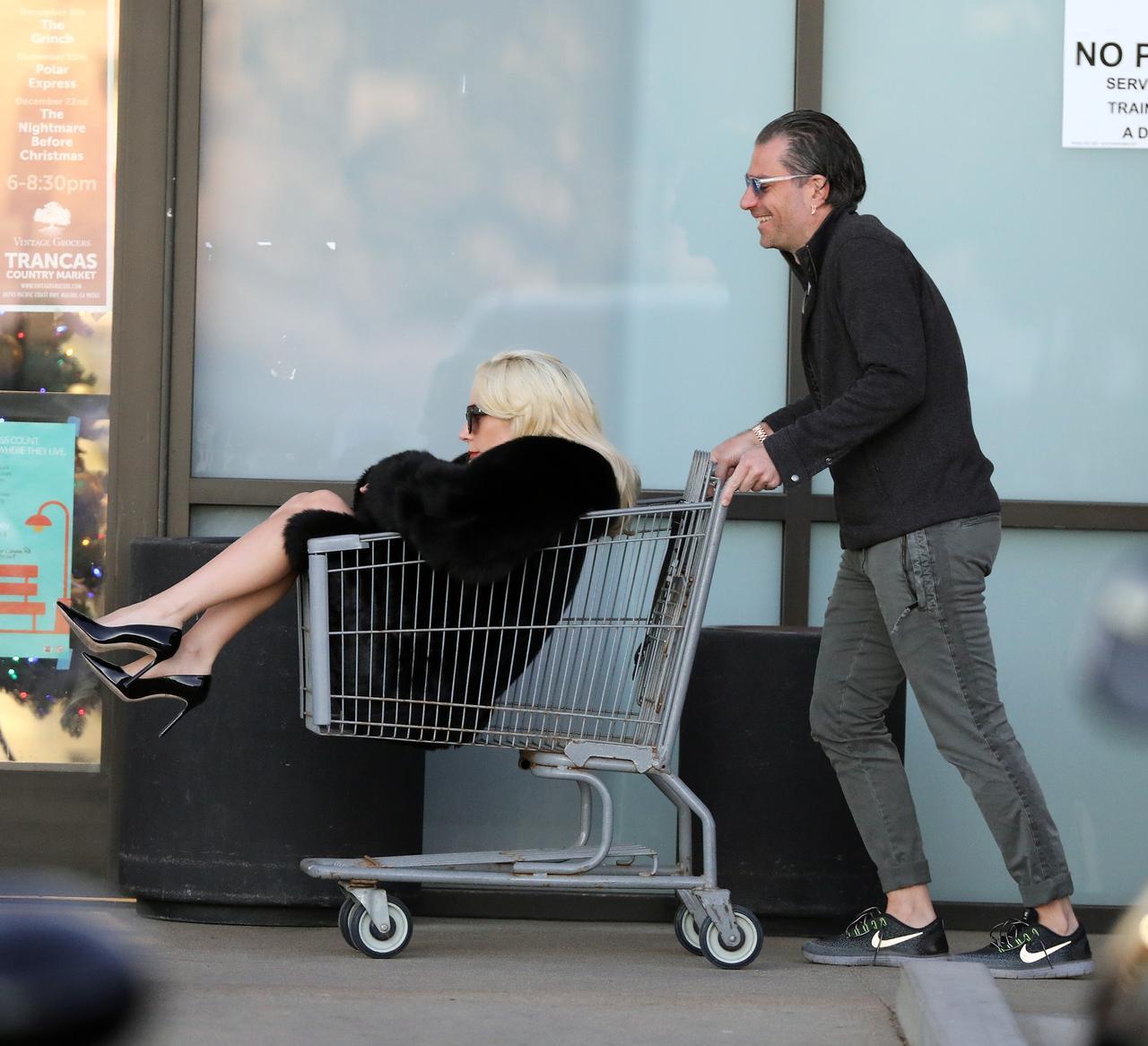 2017年12月25日、自宅近くのスーパーにクリスチャンと買い出しに出かけ、ショッピングカートに収まるガガ。