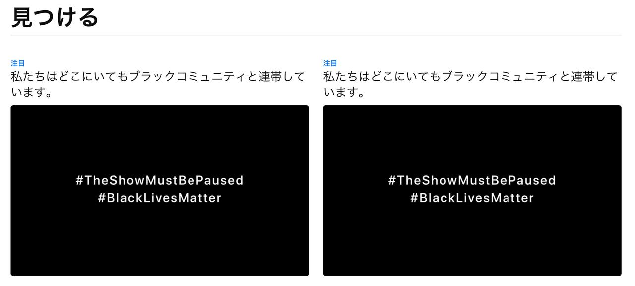 6月2日現在、Apple Musicのトップ画面には「私たちはどこにいてもブラックコミュニティと連帯しています」と書かれている。