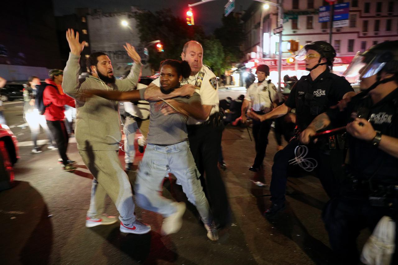 Black Lives Matterの抗議デモで、市民を逮捕する警官。(2020年6月3日にニューヨークで撮影)