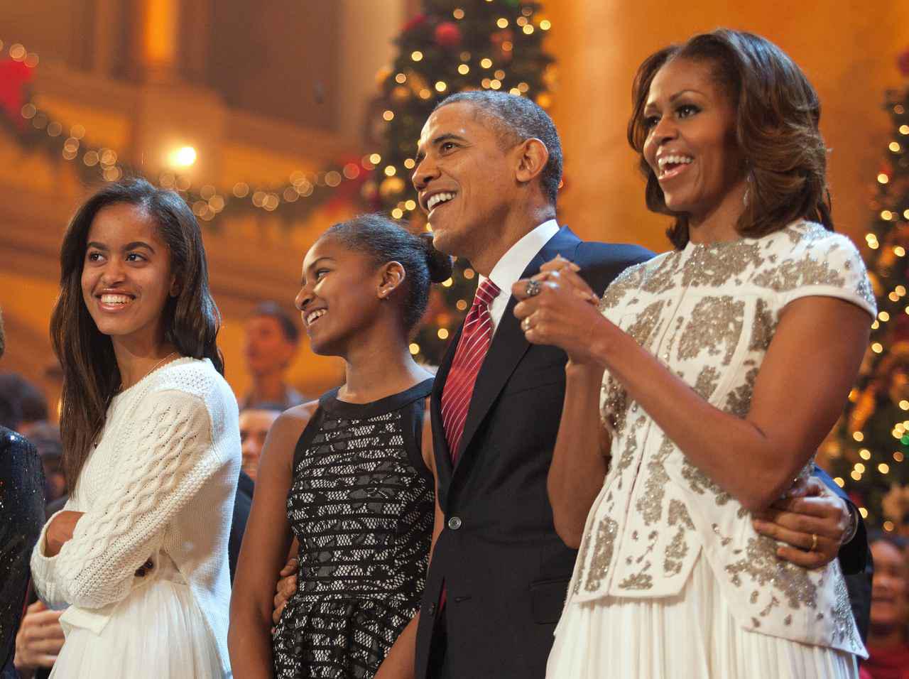 右からミシェル・オバマ氏、バラク・オバマ氏、そして2人の娘。