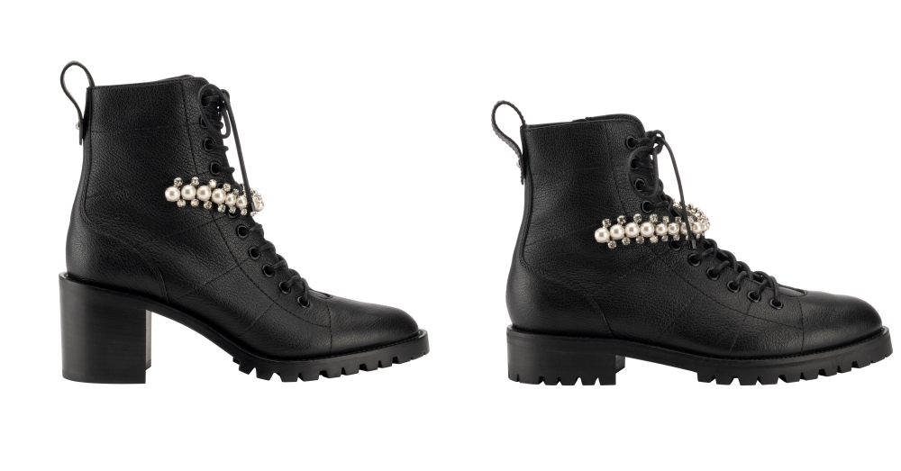 そして人気のCRUZ ブーツも、本コレクションのメインモチーフであるパールとクリスタルの装飾をあしらったデザインに。タフなシューズが繊細で華やかにアレンジされている。