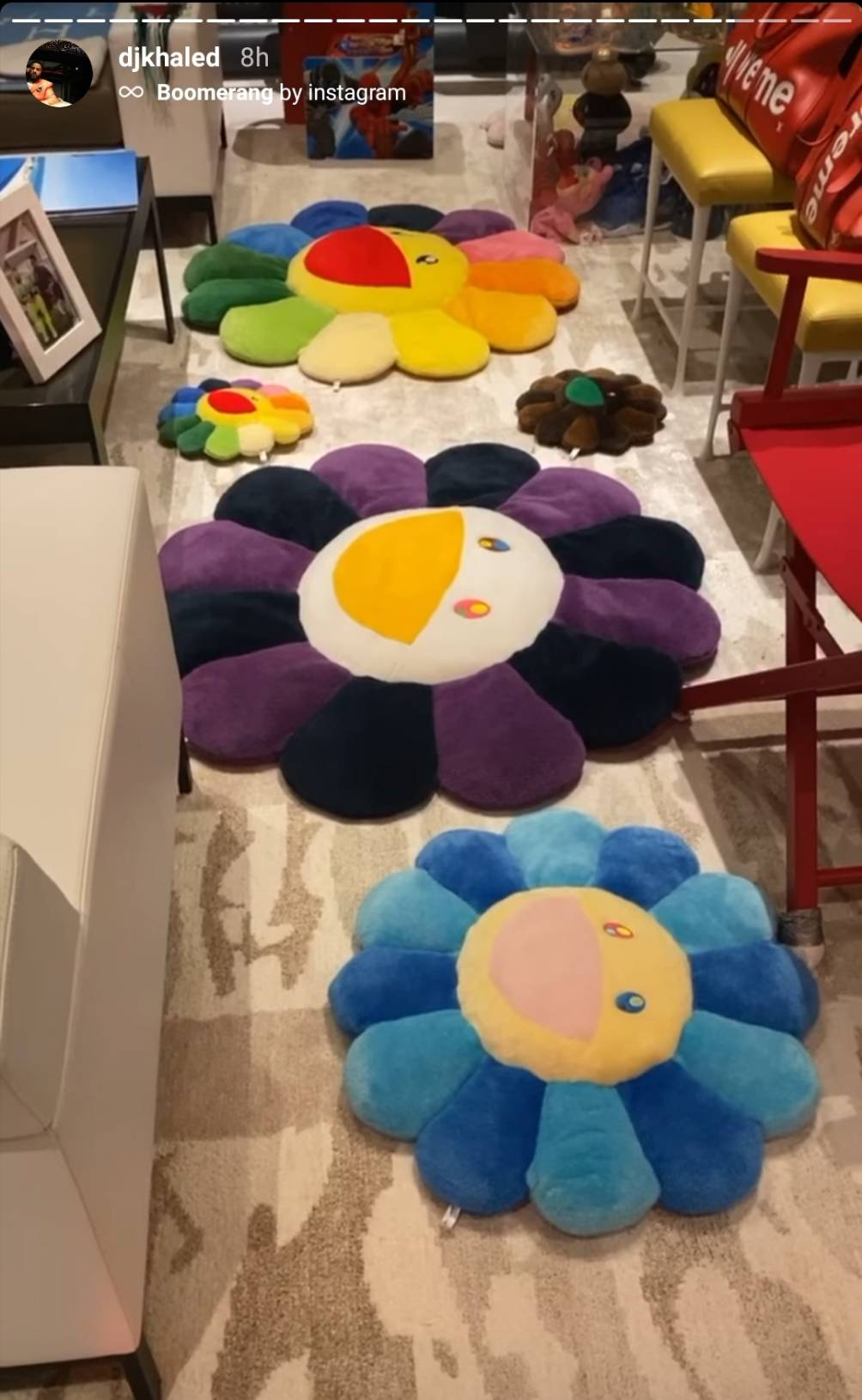 そんな世界中で人気を誇る村上隆のことがキャレドは大好きで、自身のインスタグラムでは、自宅にある村上隆のコレクションの一部を紹介。キャレドの自宅には、村上隆の代表的な作品である、カラフルなフラワーのクッションが多数。今回披露したものだけでも大小問わず10個以上のクッションが。