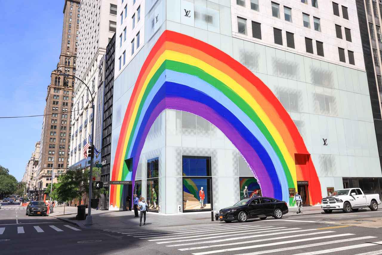 スペイン・マドリードの店舗では、虹のなかにルイ・ヴィトンの代表的なデザインであるモノグラムが描かれたものが採用され、ニューヨークの5番街の店舗では、ショーウィンドウだけでなく店舗の外観にデカデカと使われ、虹は虹でも、地域によって全く違う顔をみせた。