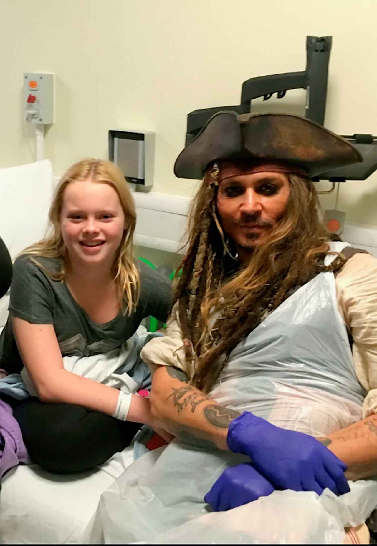 俳優のジョニー・デップが自身の代表作の1つである映画『パイレーツ・オブ・カリビアン』で演じたジャック・スパロウ船長に扮して、もはやライフワークともなっている、子供病院への“訪問”を行なった。