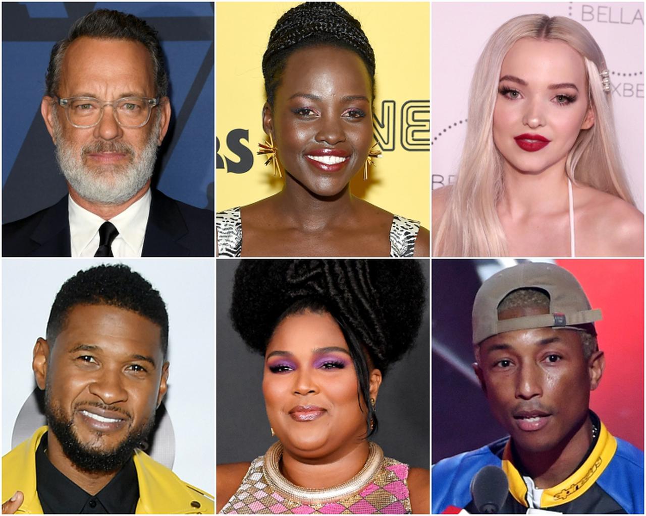 上段左から:トム・ハンクス、ルピタ・ニョンゴ、ダヴ・キャメロン、下段左から:アッシャー、リゾ、ファレル