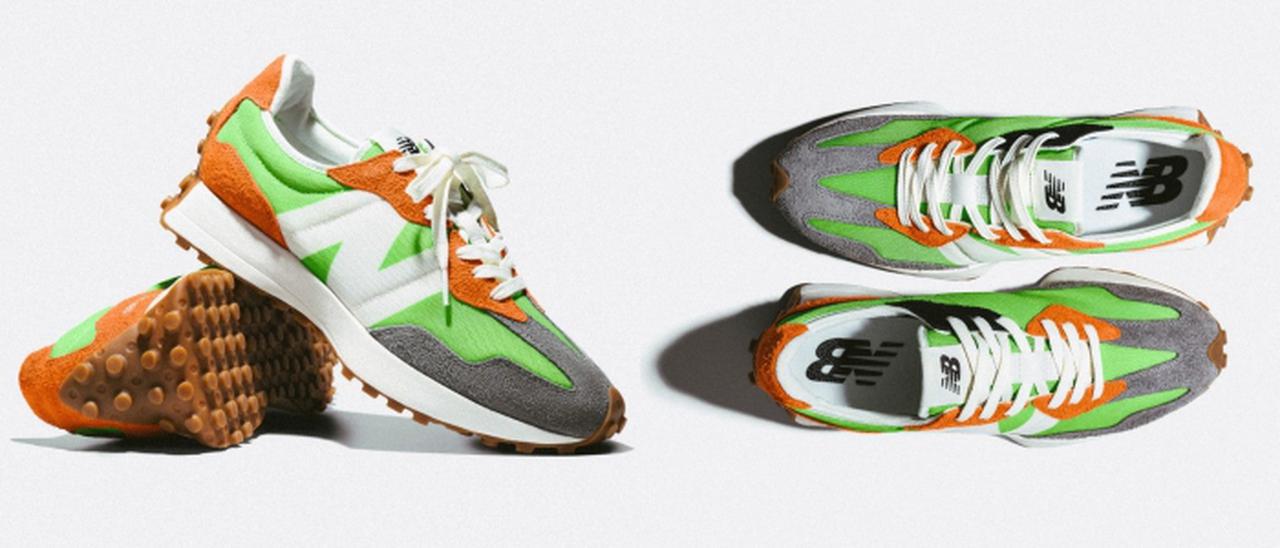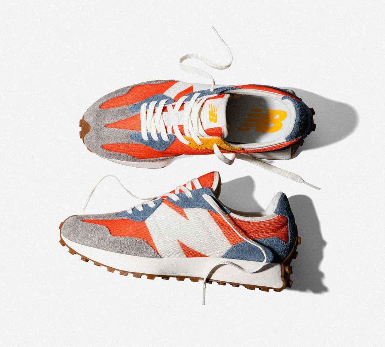 ニューバランスの最新モデル「327」は、1970年代のニューバランスを代表するランニングシューズ「320」「355」「Super Comp」の3つのモデルからインスパイアされて誕生。それぞれのモデルの象徴的なデザインやディテールを取り入れ、その要素がアレンジされている。