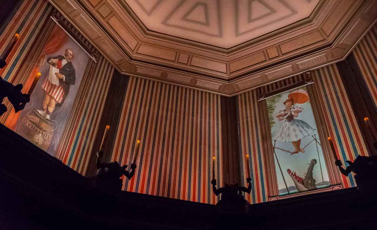 一部のディズニーファンたちの間で“テコ入れ”が検討されるべきか否かと議論されているのは、アトラクションの序盤、3人乗りの黒い椅子型のライドに乗る前に、ゲストたちが通される「ストレッチルーム(伸びる部屋)」の最後に一瞬だけ登場する“首を吊る男性”の演出。