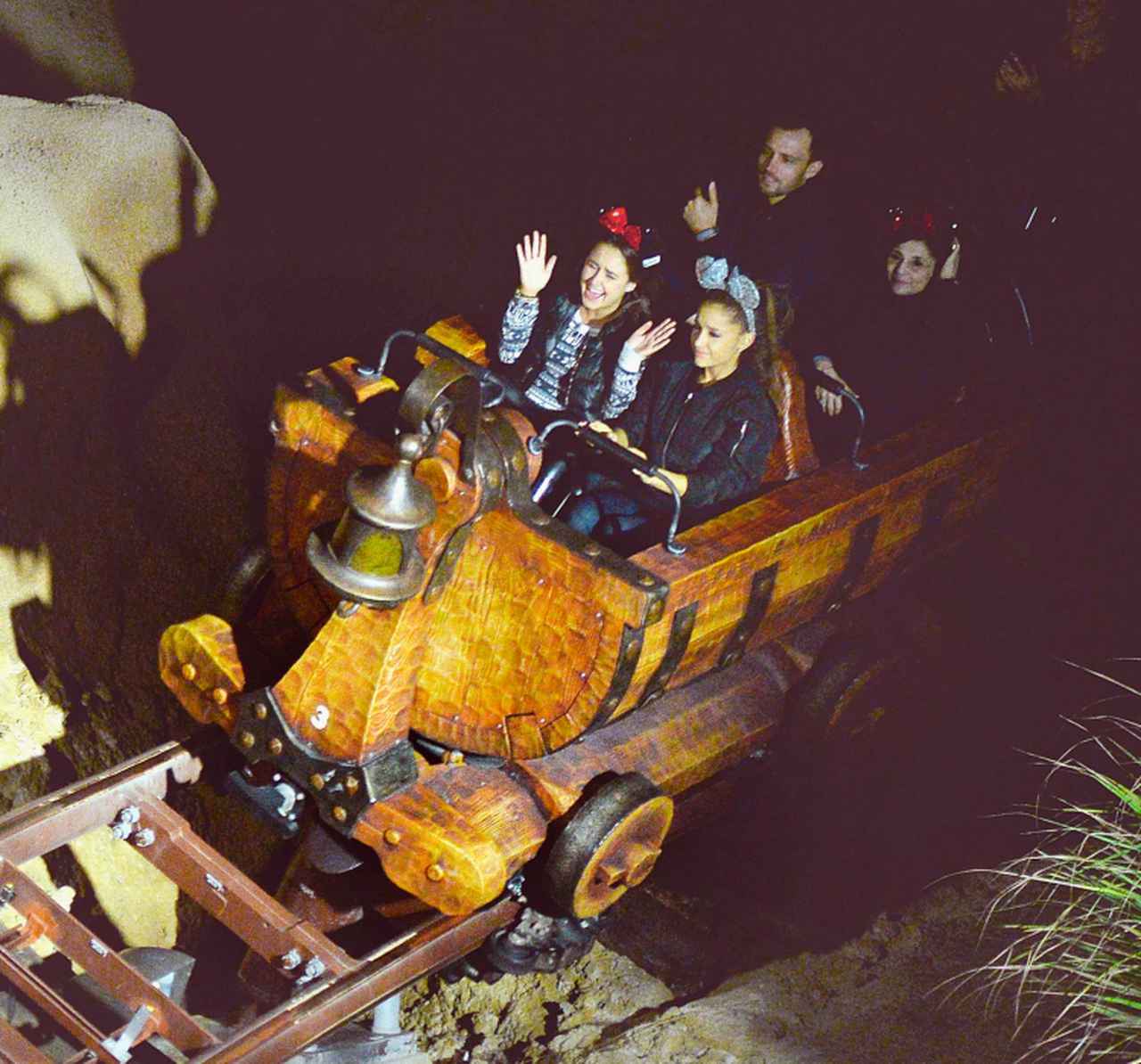 夜ディズニー中に『七人のこびとのマイントレイン』を楽しむアリアナ・グランデ。