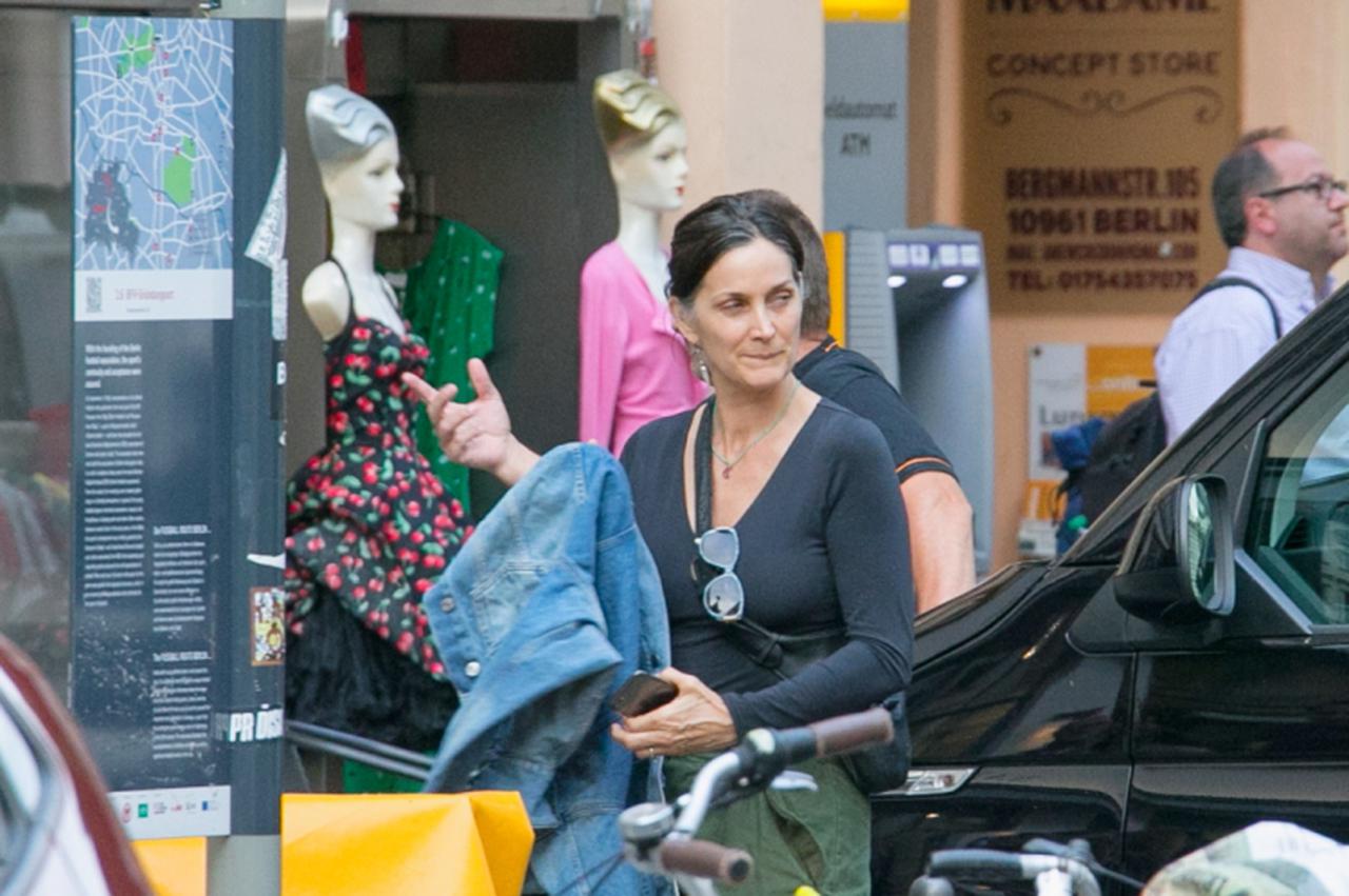 キャリー・アン・モス。カジュアルなパーティーのようで、すっぴんで参加していた。