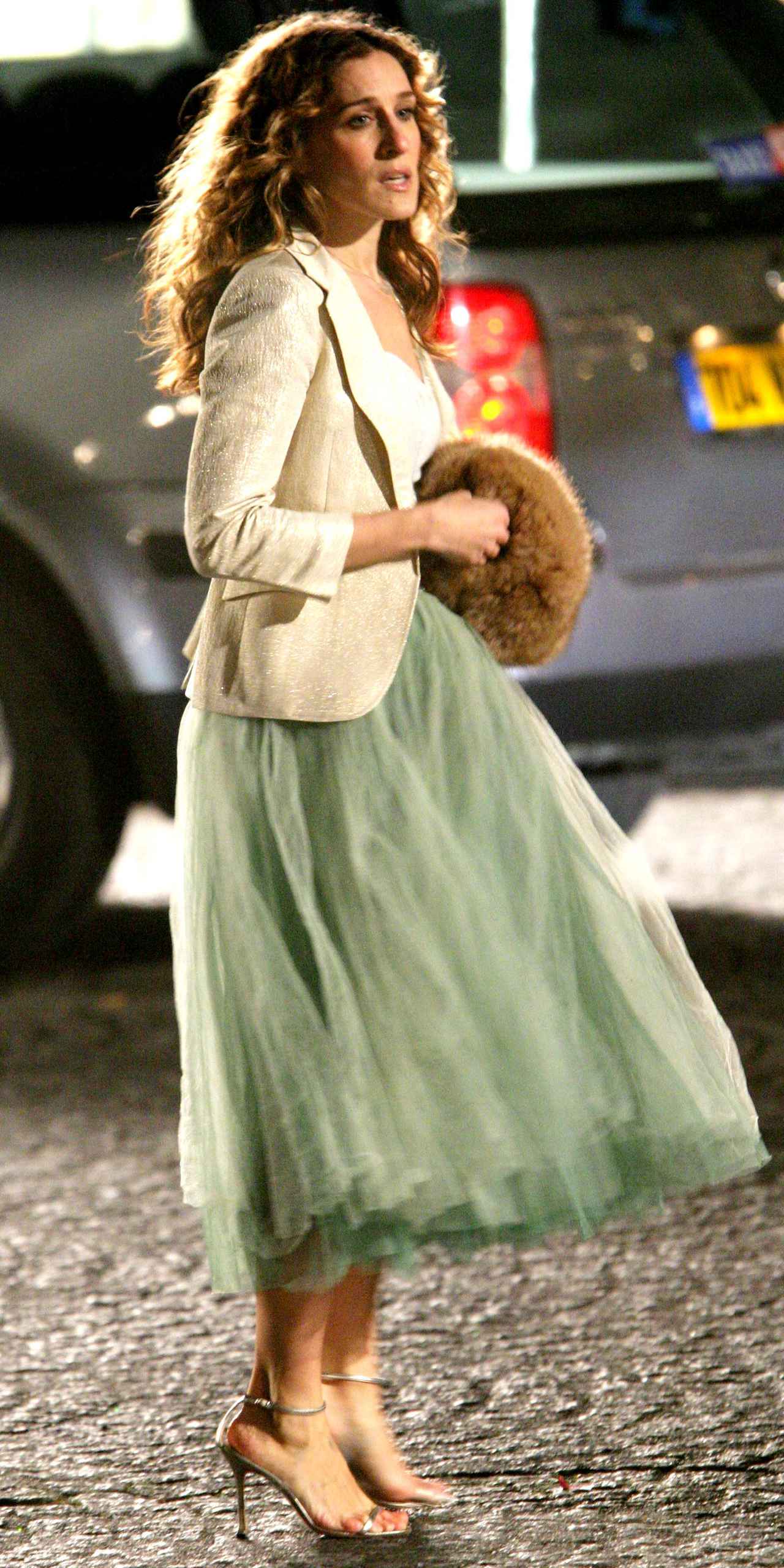 このドレスを主役にしたコーディネートは、さまざまなファッショントレンドを生み出したことでも知られる『SATC』に登場した衣装のなかでも、キャリーらしさや可憐さ、クラシカルな雰囲気がうまく表現された着こなしだとファンの間でも人気が高い。