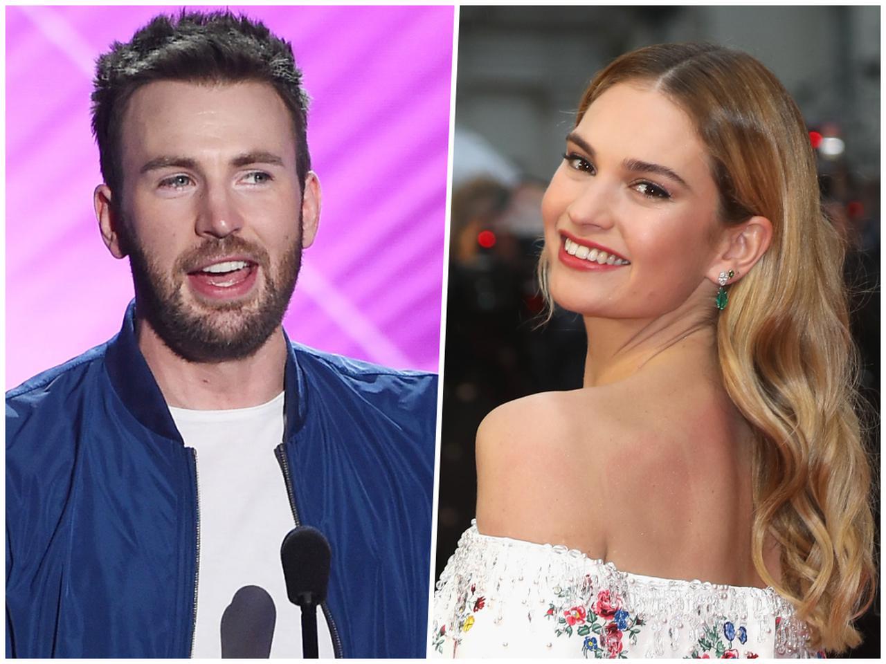 クリス・エヴァンス(左)とリリー・ジェームズ(右)。