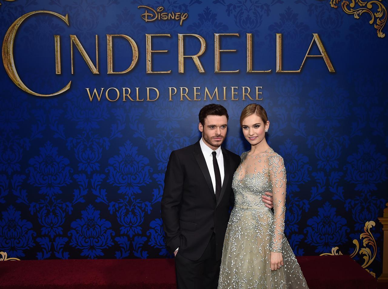 映画『シンデレラ』のプレミアでキット王子を演じた俳優のリチャード・マデンと。