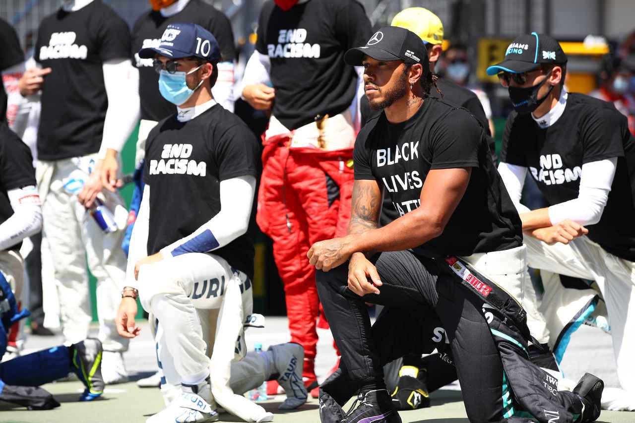 しかし、6人のドライバーたちは、人種差別に抗議するTシャツを着用していたものの、ヒザをつくことはなく、立ち尽くしたままだった。その6人のうちの1人であるフェラーリのドライバー、シャルル・ルクレールは、「一部の国で物議をかもすと見なされる可能性があるジェスチャーより、日常生活の中での事実と行動が重要だと信じている。僕はひざまずかないけれど、これは他の人より人種差別との闘いに熱心に取り組んでいないという意味ではない」とツイートし、レッドブルのマックス・フェルスタッペンも「僕は平等と人種差別との闘いについて熱心に取り組んでいる。けど、みんなが自分に合ったそれぞれの方法で自分を表現する権利を持っていると信じている。今日はひざまずかないけれど、すべてのドライバーが決めたそれぞれの選択を支持してリスペクトする。#WeRaceAsOne(#我々は一丸となってレースする)#EndRacism(#人種差別を根絶しよう)」と、日々の生活の行ないで示すことの方が大切と、テイク・ア・ニーをしなかった理由をツイッターに書き込んだ。