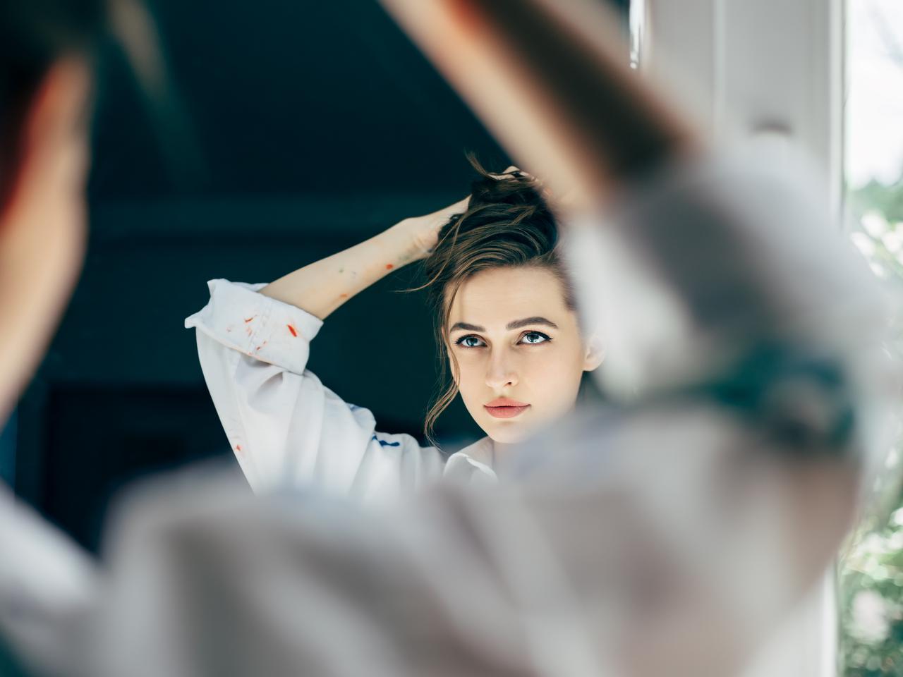 3つ目の使い方は「日中のメイクのリフレッシュ」。とくに夏の季節は汗をかきやすく、気づけばメイクがドロドロに。そんなときにメイクキープスプレーを持ち歩いていると、どこでもうるおいをチャージできるだけでなく、肌をひきしめてテカリを抑えることができるとヴィミは言う。