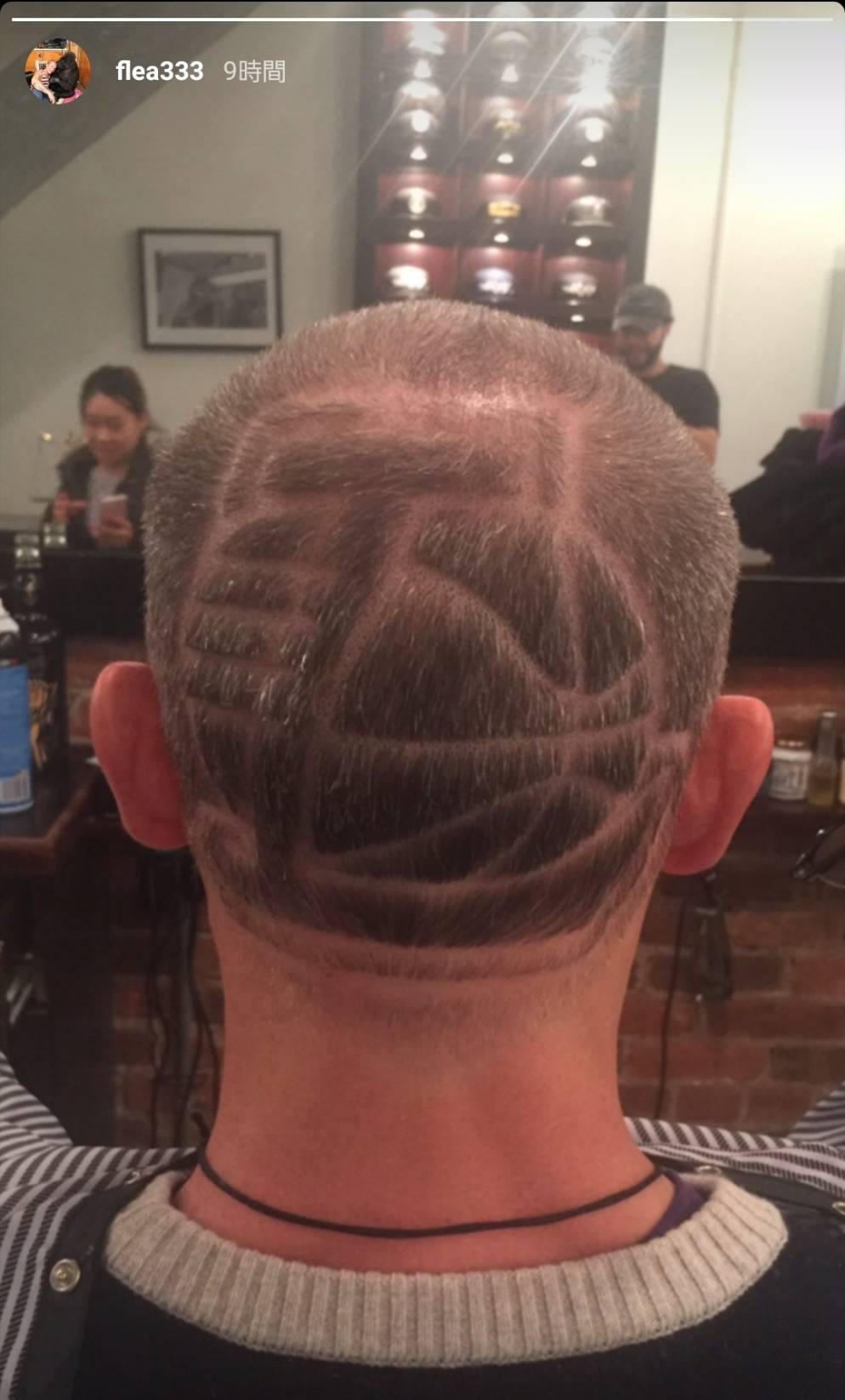 なんとあれだけ話題になった三つ編みができるほどのチョコっとした髪の毛は切り落とされている。そのかわりに、坊主頭にラインが入れられ後頭部に新しいデザインが誕生。後頭部に入れたデザインについては明かされていないものの、フリーが大好きなバスケットボールチーム、ロサンゼルス・レイカーズのロゴのようなデザインにも見える。