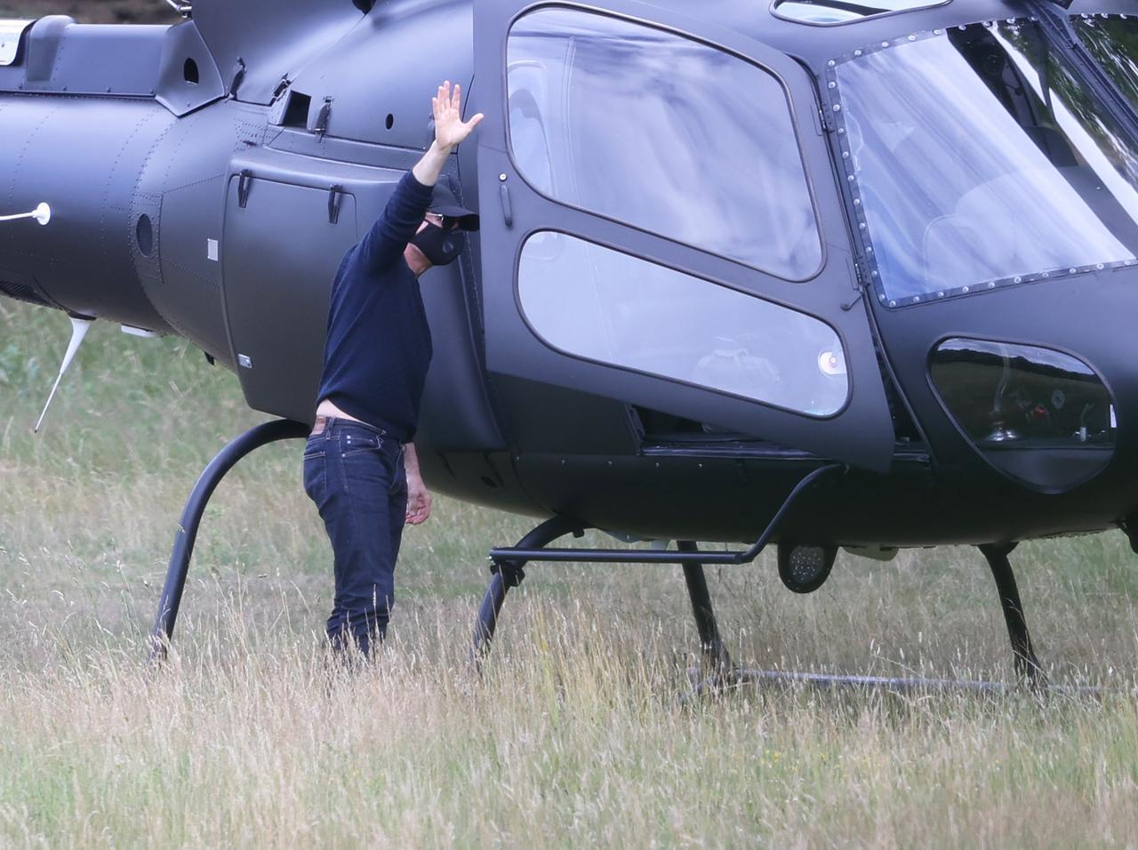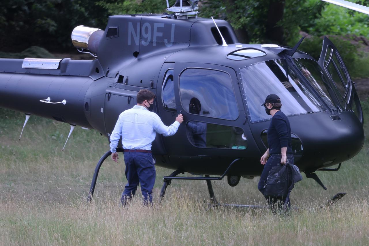 ロンドンのリッチモンドにあるゴルフ場に、突然着陸したヘリコプター。中からは、黒いキャップにマスク、ネイビーのトップスにジーンズ、そしてサングラスをかけたトムが。ぱっと見は誰だか分かりづらいけれど、そのオーラを目の前で見た現地にいた人々は、それがすぐにトムだと分かったようで、トムの乗ってきたヘリコプターを写真に撮っていた。