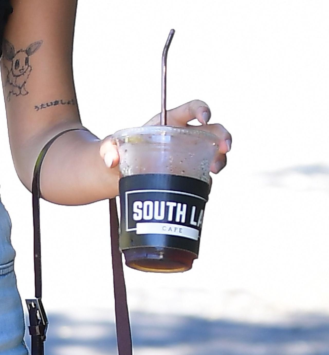 6月に入ってから、以前コラボ商品を発売したこともある大手コーヒーチェーンのスターバックスと距離を置いたことが明らかになり、以来、地元の小さなカフェ、とくに黒人に対する人種差別撤廃を訴える「Black Lives Matter(ブラック・ライヴズ・マター/黒人の命も価値がある)」のムーブメントのサポートに繋がるコーヒーショップでコーヒーを購入しているアリアナ。