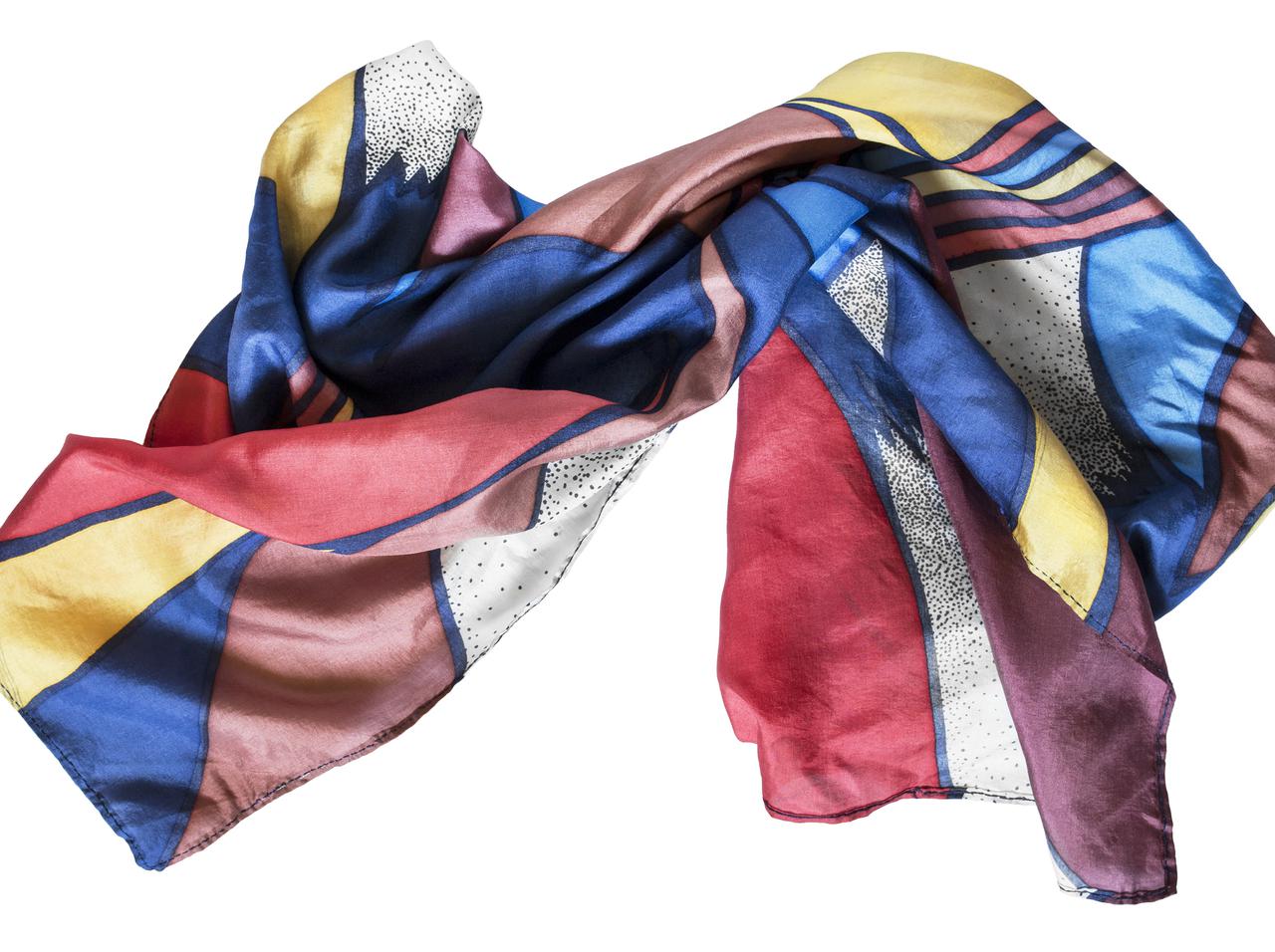 ゆるいビーチウェーブに、ペイズリー柄の赤いスカーフを巻きつけてラフなムードに。