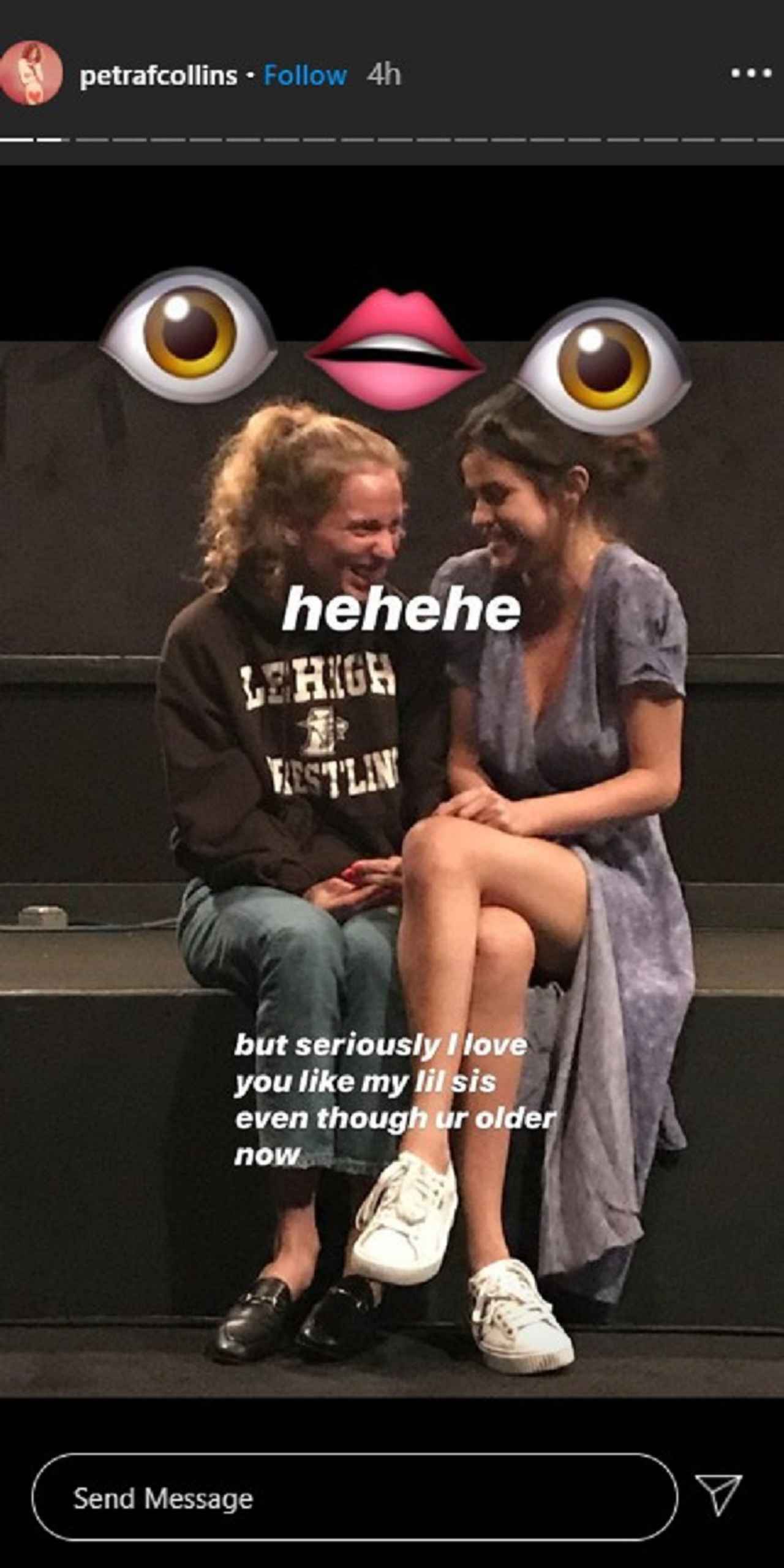 前出のアナの姉でフォトグラファーや映像クリエイターとして活動し、セレーナとのコラボでショートフィルムを発表したこともあるペトラ・コリンズは、2人で内緒話をする仲良しショットや、撮影中のオフショットなどを投稿した。