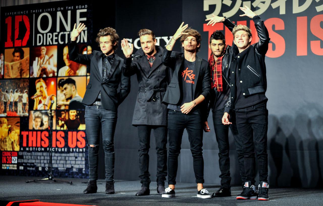 2013年、ドキュメンタリー映画『ワン・ダイレクション THIS IS US』のプロモーションイベント等で来日した際のメンバーたち。左から:ハリー・スタイルズ、リアム・ペイン、ルイ・トムリンソン、ゼイン・マリク、ナイル・ホーラン。