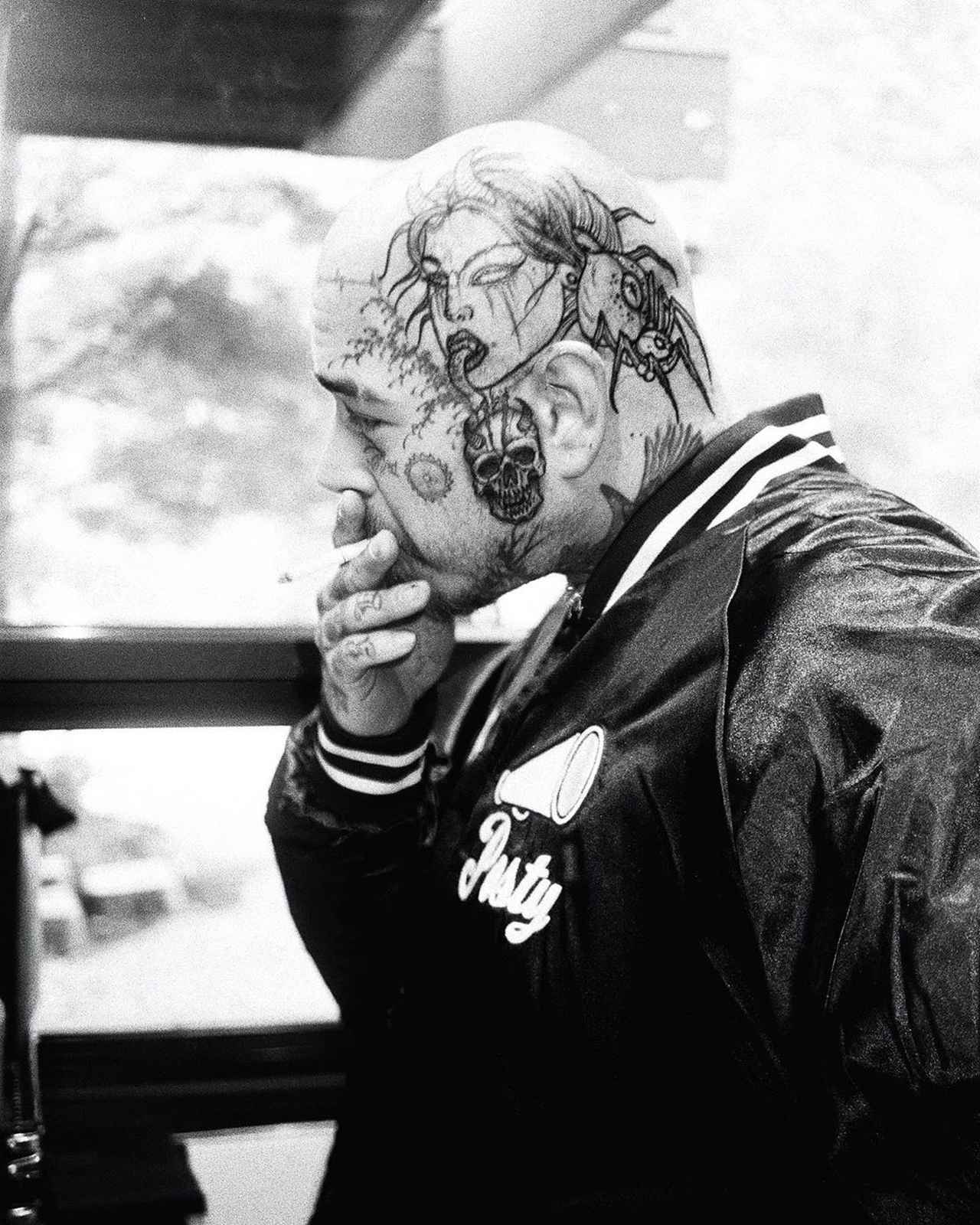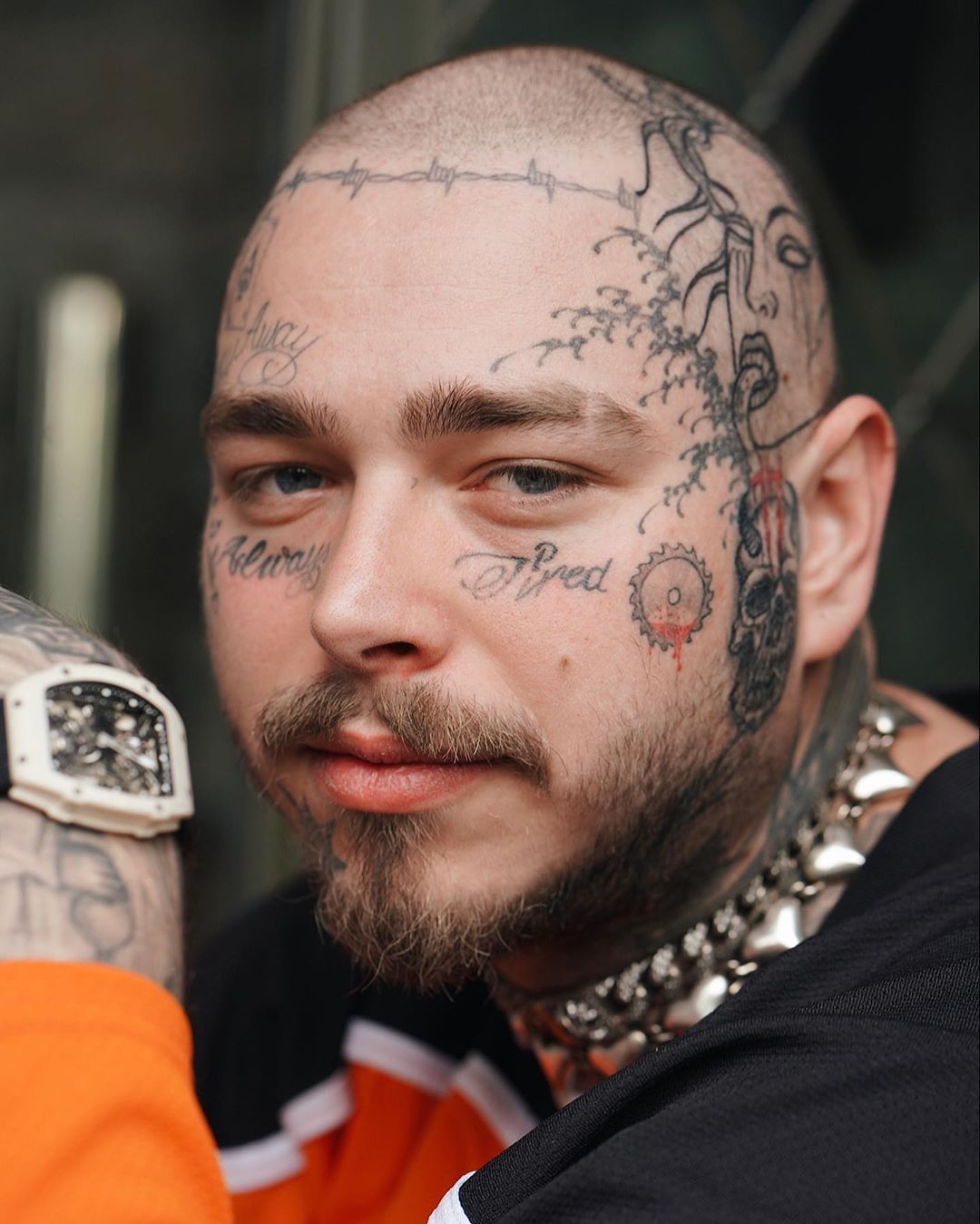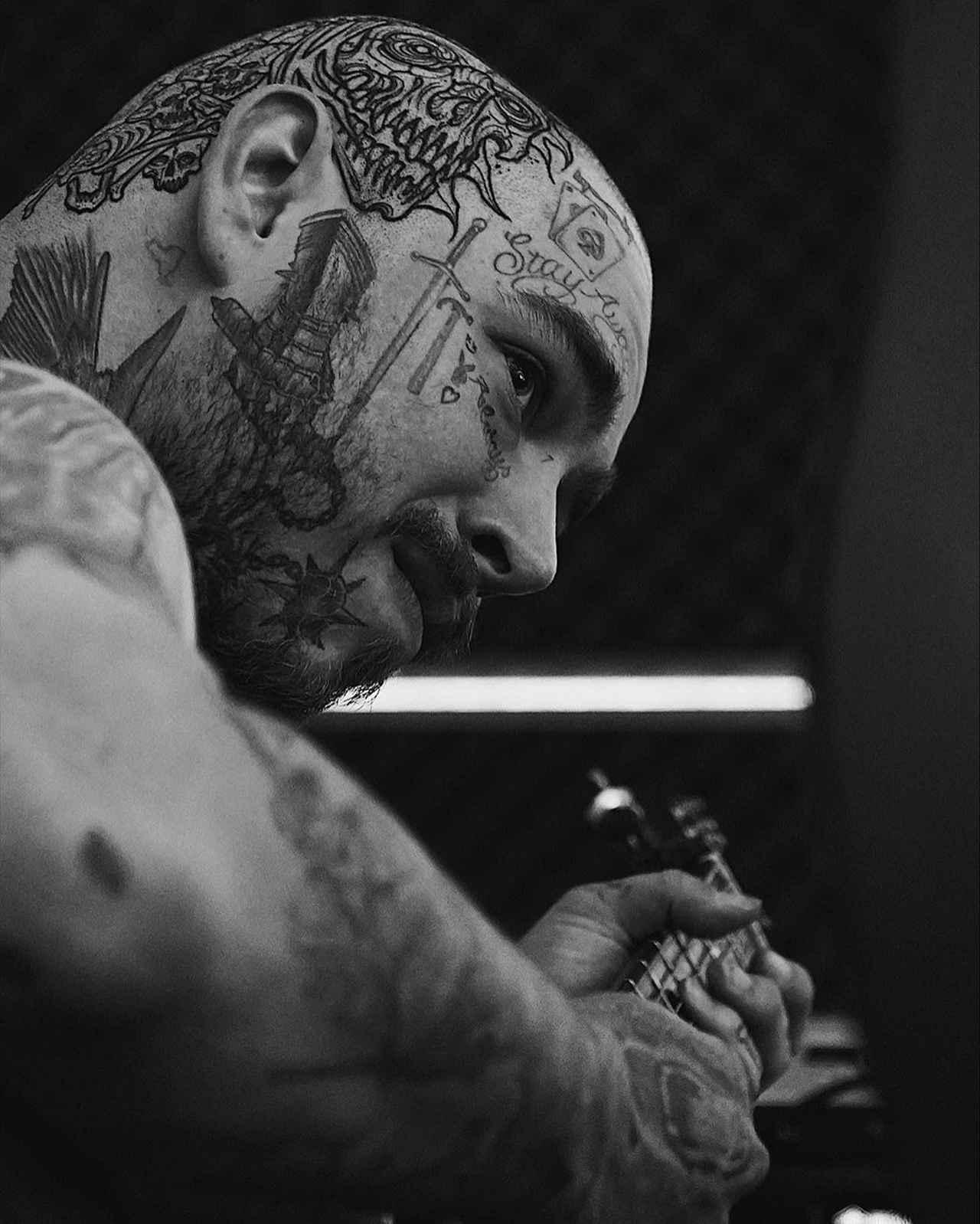 一見コワモテながら、じつは親しみやすい愛されキャラでファンを増やし続けているポストのトレードマークといえば、やはり体だけでなく顔にも無数に入っているタトゥー。