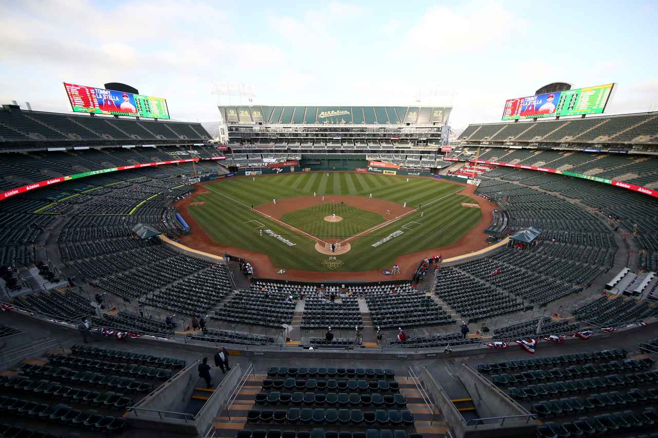 米現地時間7月24日にオークランド・コロシアムで開催されたオークランド・アスレチックスとロサンゼルス・エンゼルスの試合。