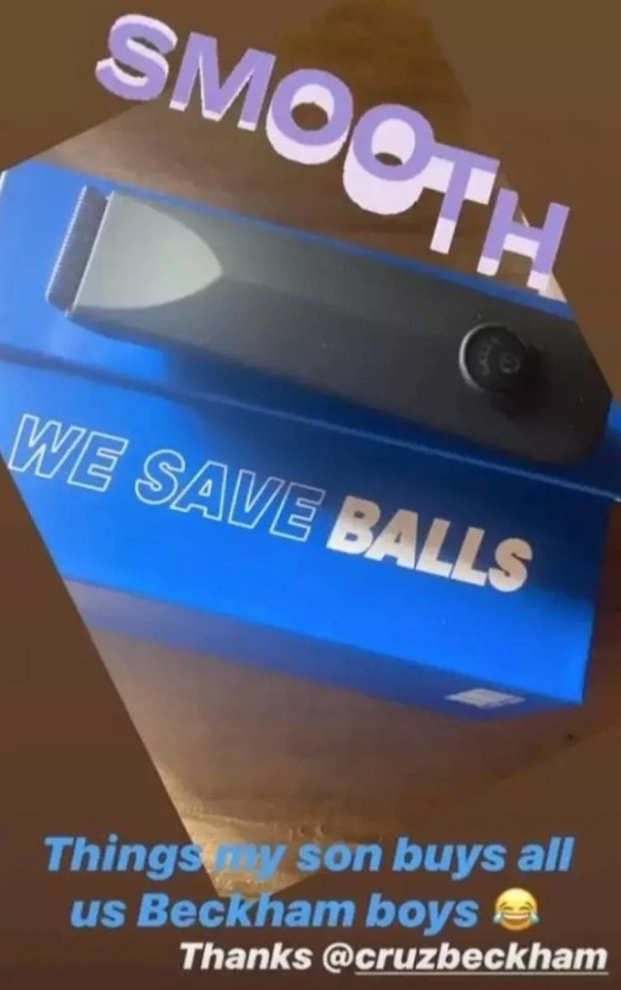 デビッドが公開した睾丸用シェーバーの写真には「息子がベッカム家の男子全員に買ってくれたよ」という爆笑する絵文字を添えたコメントにくわえて、「Smooth(ツルツル)」というステッカーまで貼られていた。