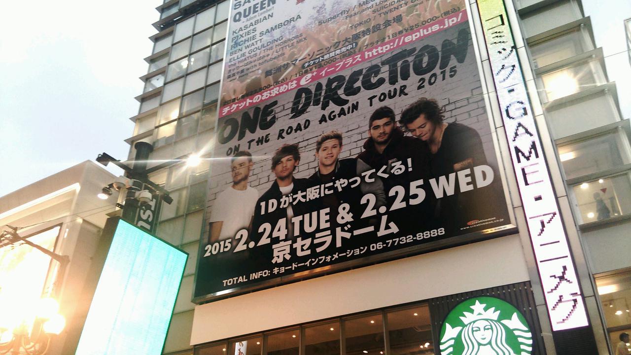 チケットが即完したON THE ROAD AGAIN TOUR 2015の大阪公演を知らせるビルボード広告。
