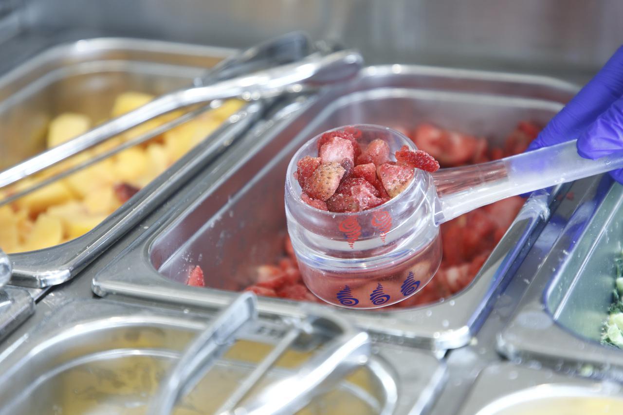 「Jamba」のスムージーの魅力は、なんといってもこだわりの素材。フローズンの果物・野菜、濃縮 100%ジュースや栄養素を使い、合成着色料、合成香料、人工甘味料、果糖ブドウ糖液糖は不使用。そのカラフルな色合いも合成着色料によるものではないので、安心して楽しめる。