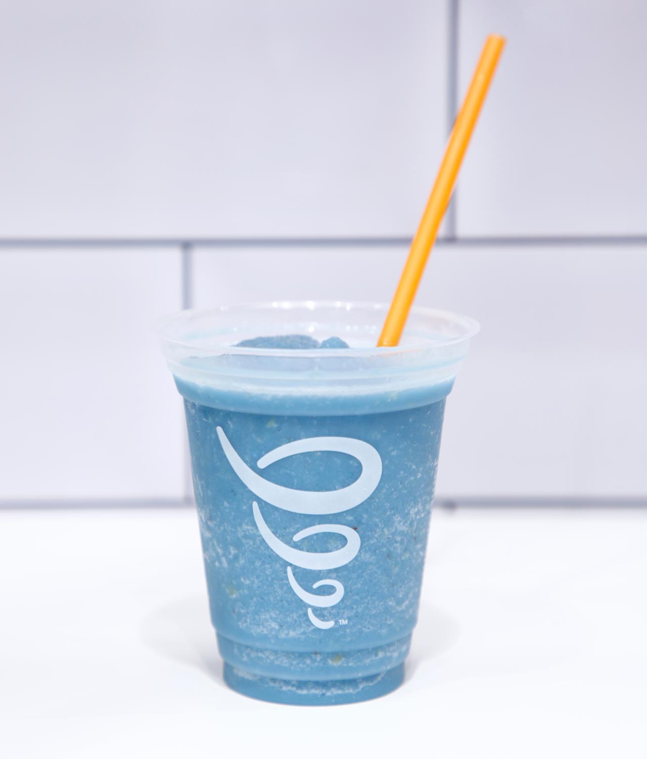 日本限定スムージー「ソライロ・コージー」は、その名のとおり鮮やかな青色が特徴で、この青さをつくっているのは植物由来の天然色素“スピルリナ・ブルー”。そして日本らしく塩麹(しおこうじ)が入ったスペシャルなテイスト。パッションフルーツのさわやかな酸っぱさや、塩麹の自然な甘みなどが楽しめる。