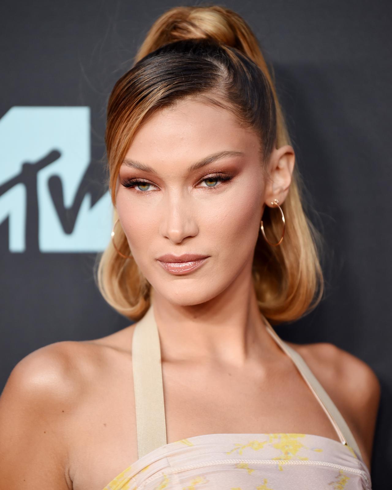 上品で清潔感たっぷりのベラ・ハディッドのハイポニーテール。長めの前髪をななめに流し、毛先を内側にワンカールして、ガーリーでクラシカルな雰囲気を満喫。