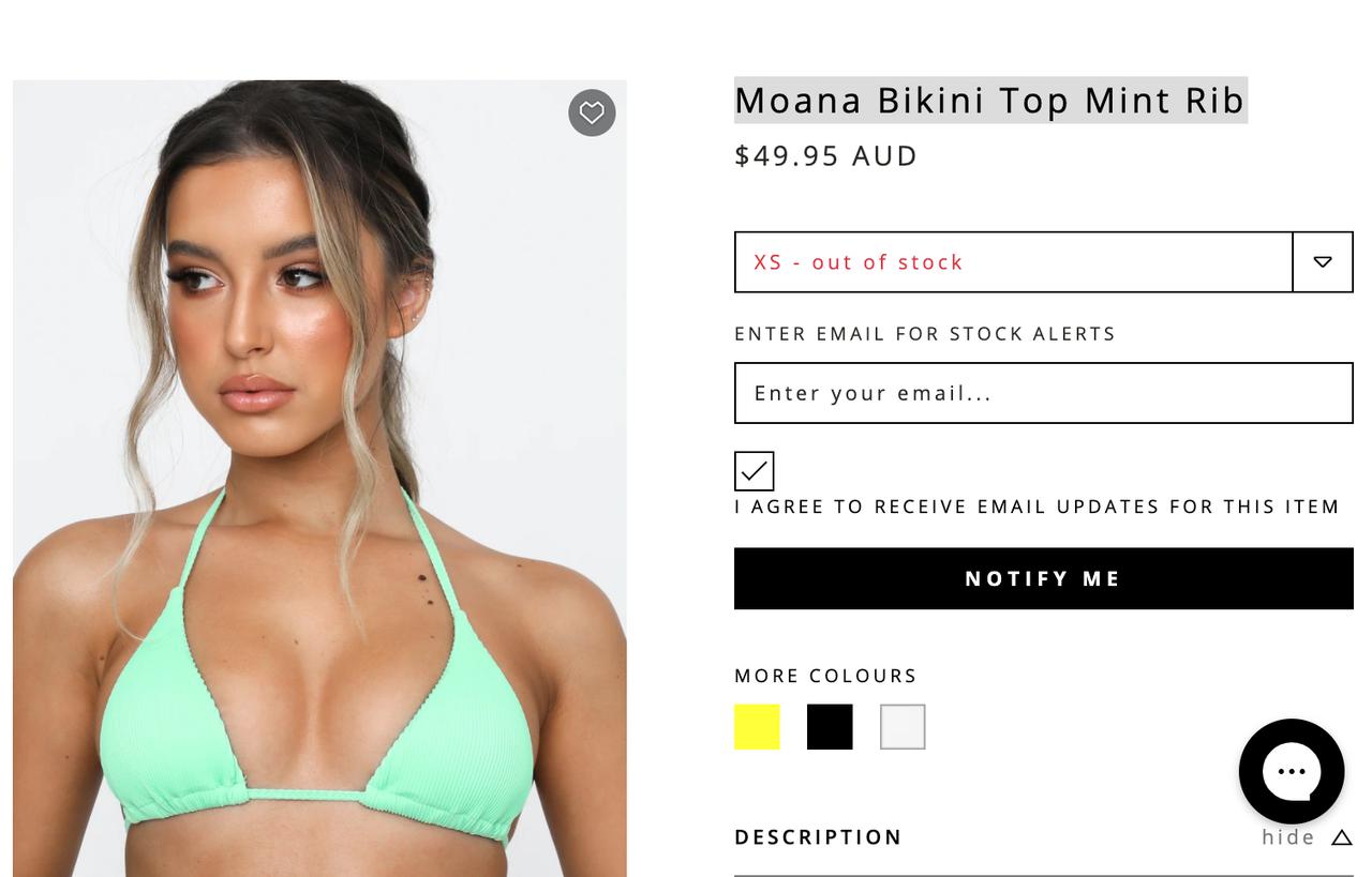 可愛らしい明るい色合いやデザインもさることながら、ファンの間で話題になったのは、そのお値段。左腕に入っている「うたいましょう」の日本語タトゥーがよく見えるアングルから撮影された写真でアリアナが着ているこの水着は、オーストラリアの人気ブランド「White Fox(ホワイト・フォックス)」の「Moana Bikini Top Mint Rib」という水着で、49.95オーストリア・ドル(約3,790円)というかなりのお手頃価格。